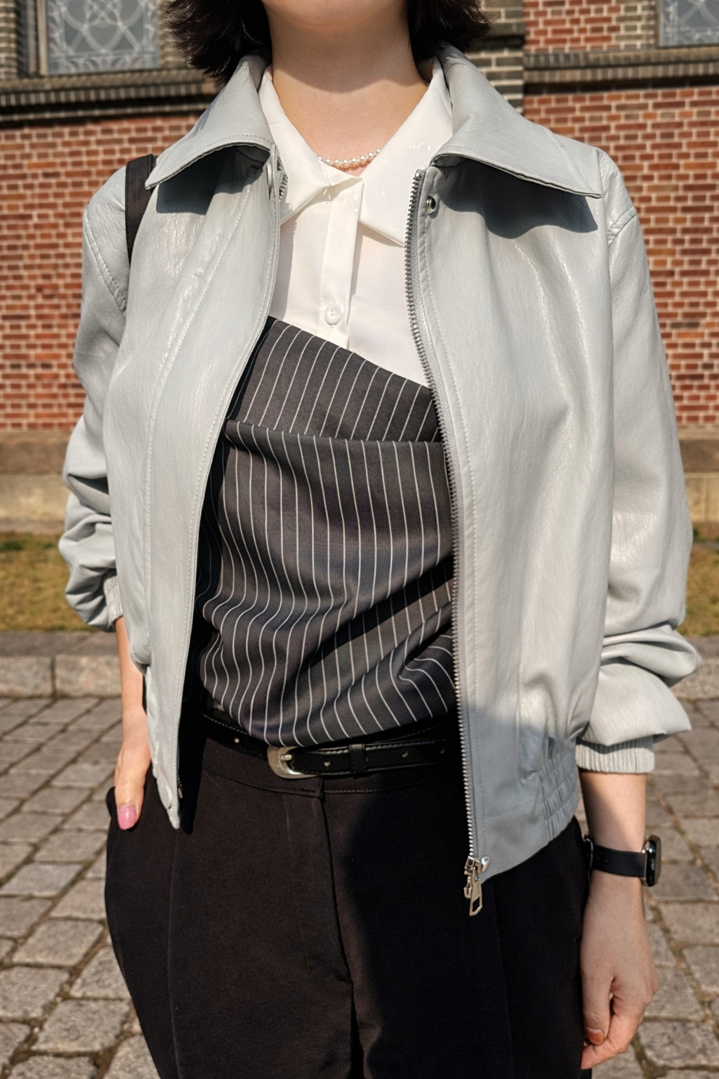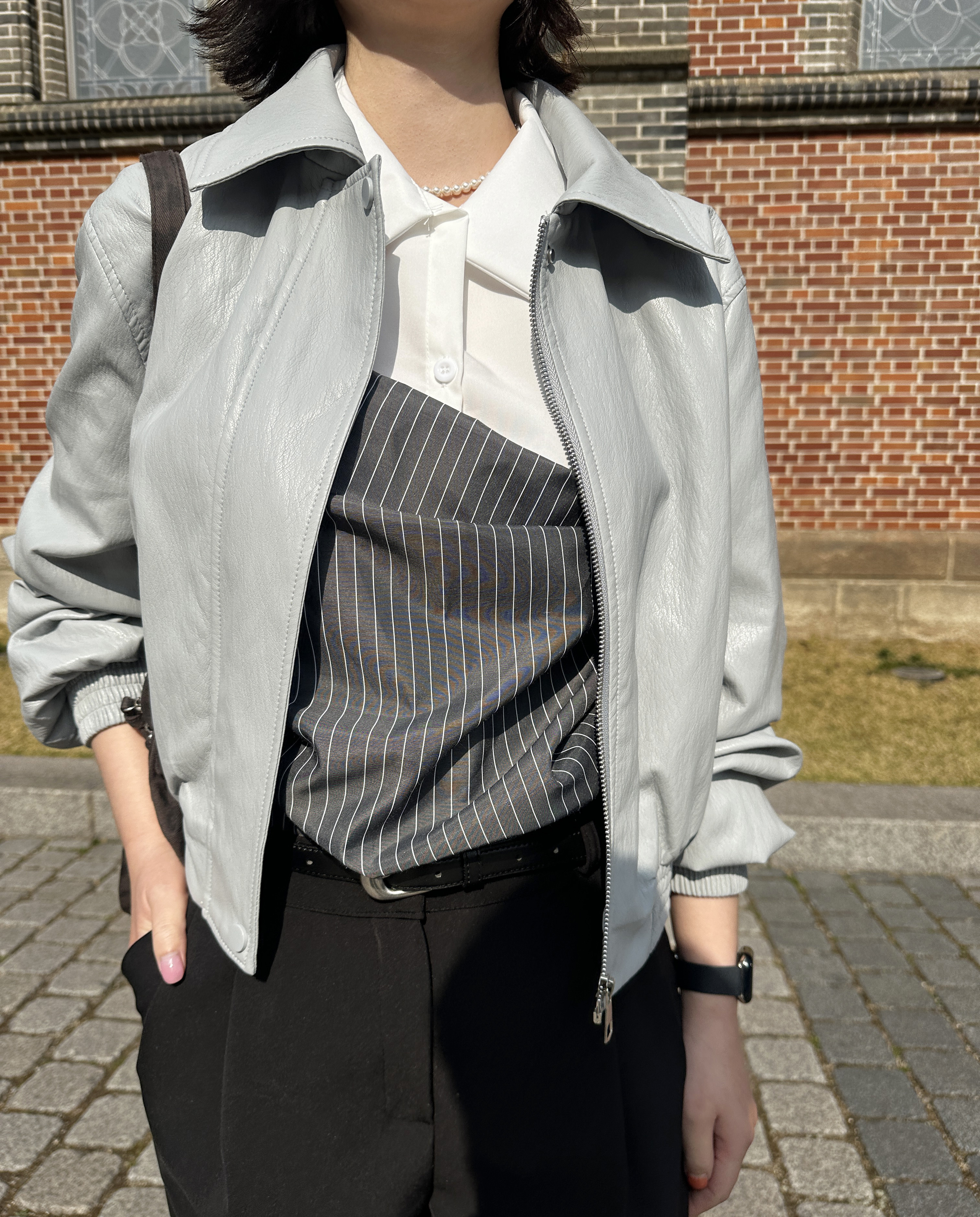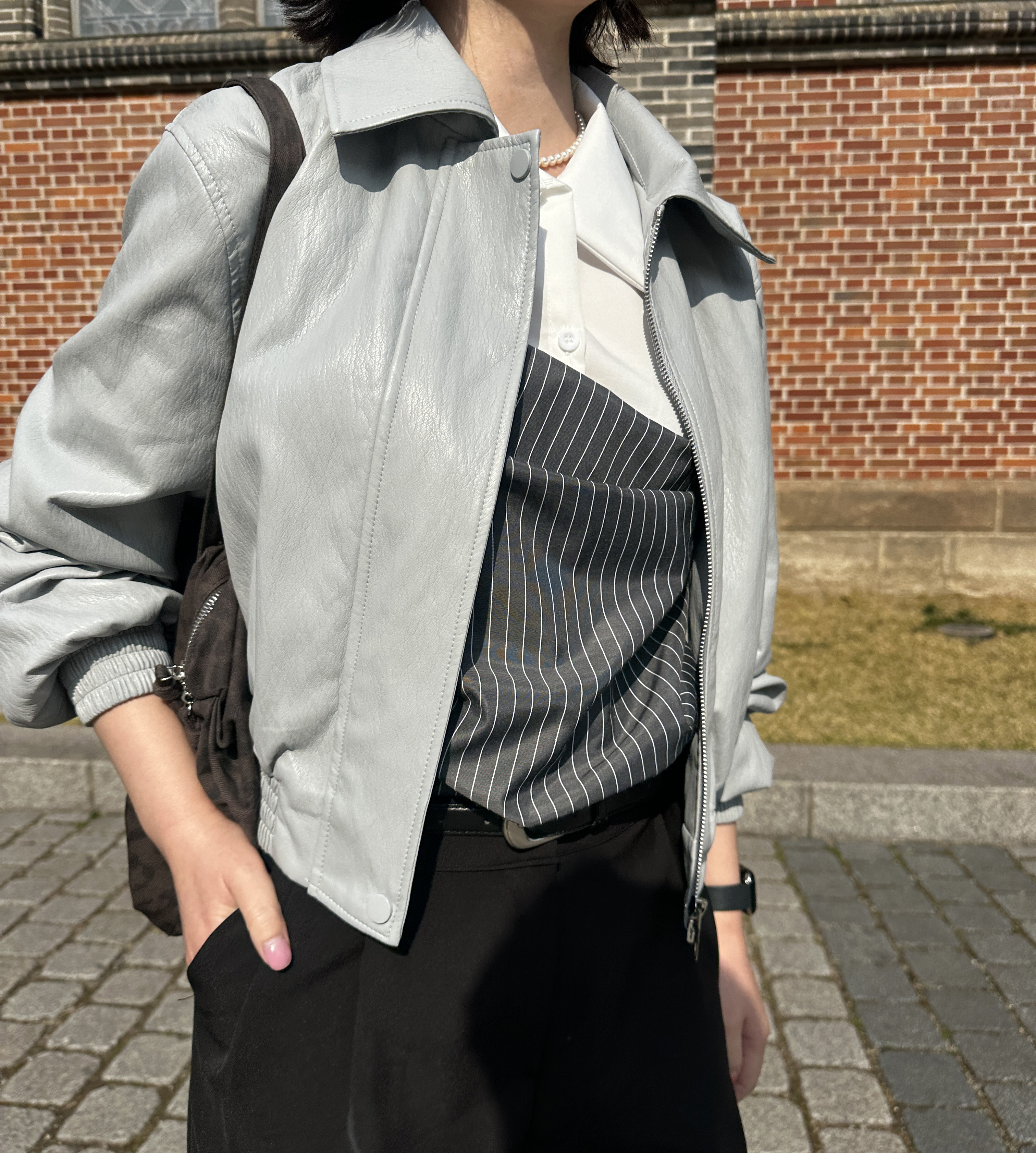레더 스타일도 청순미를 뽐낼 수 있어요.