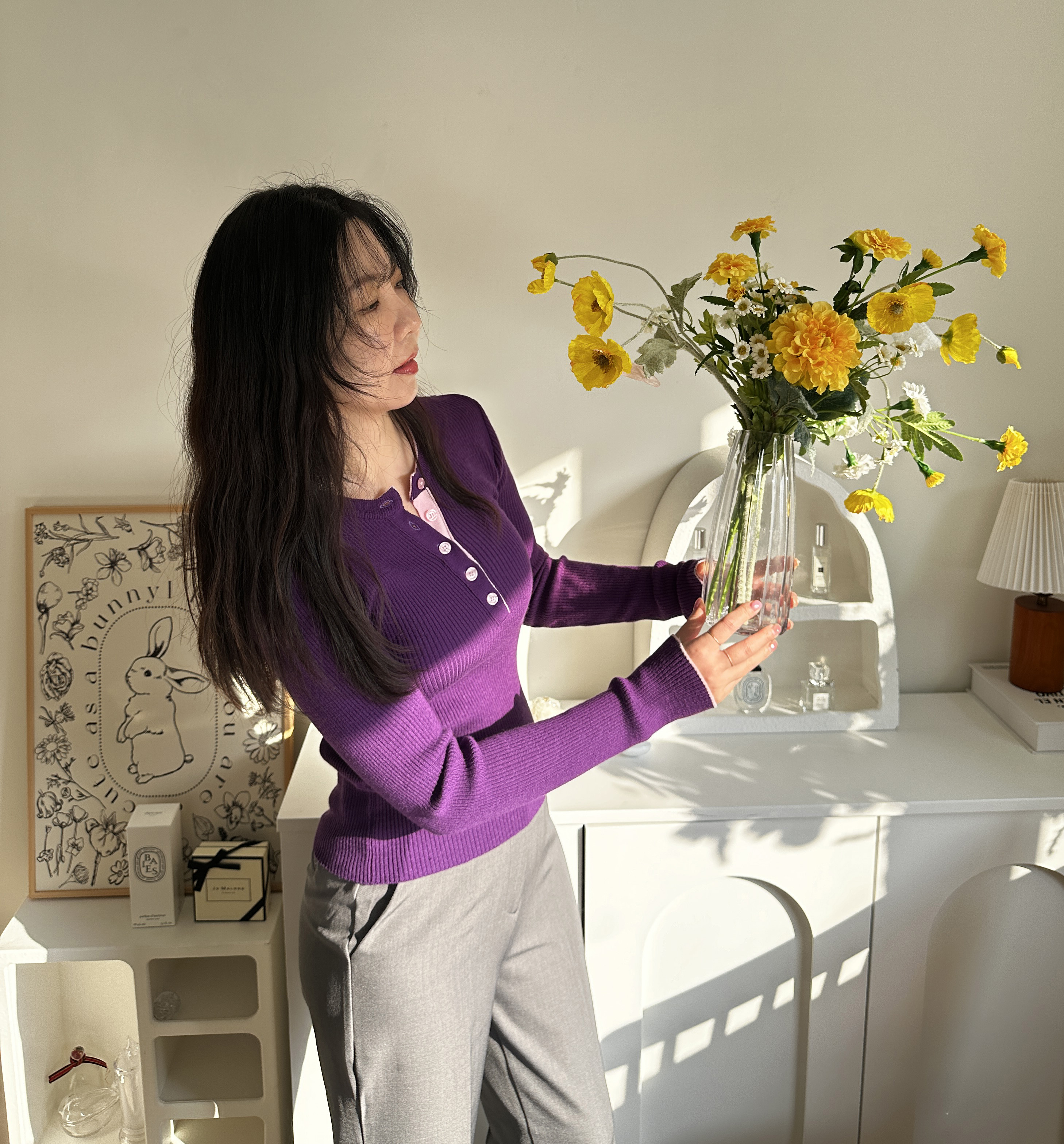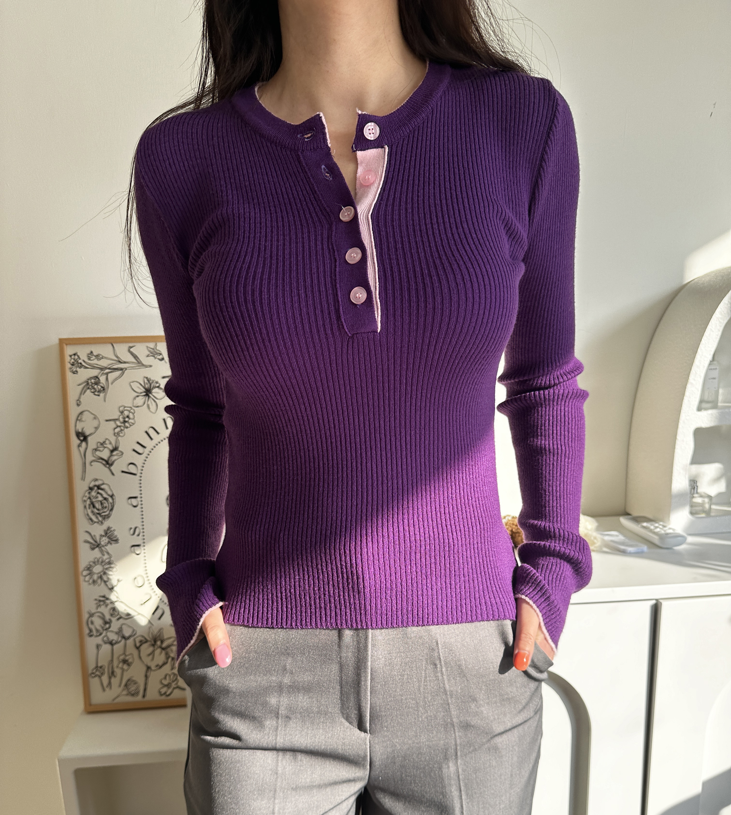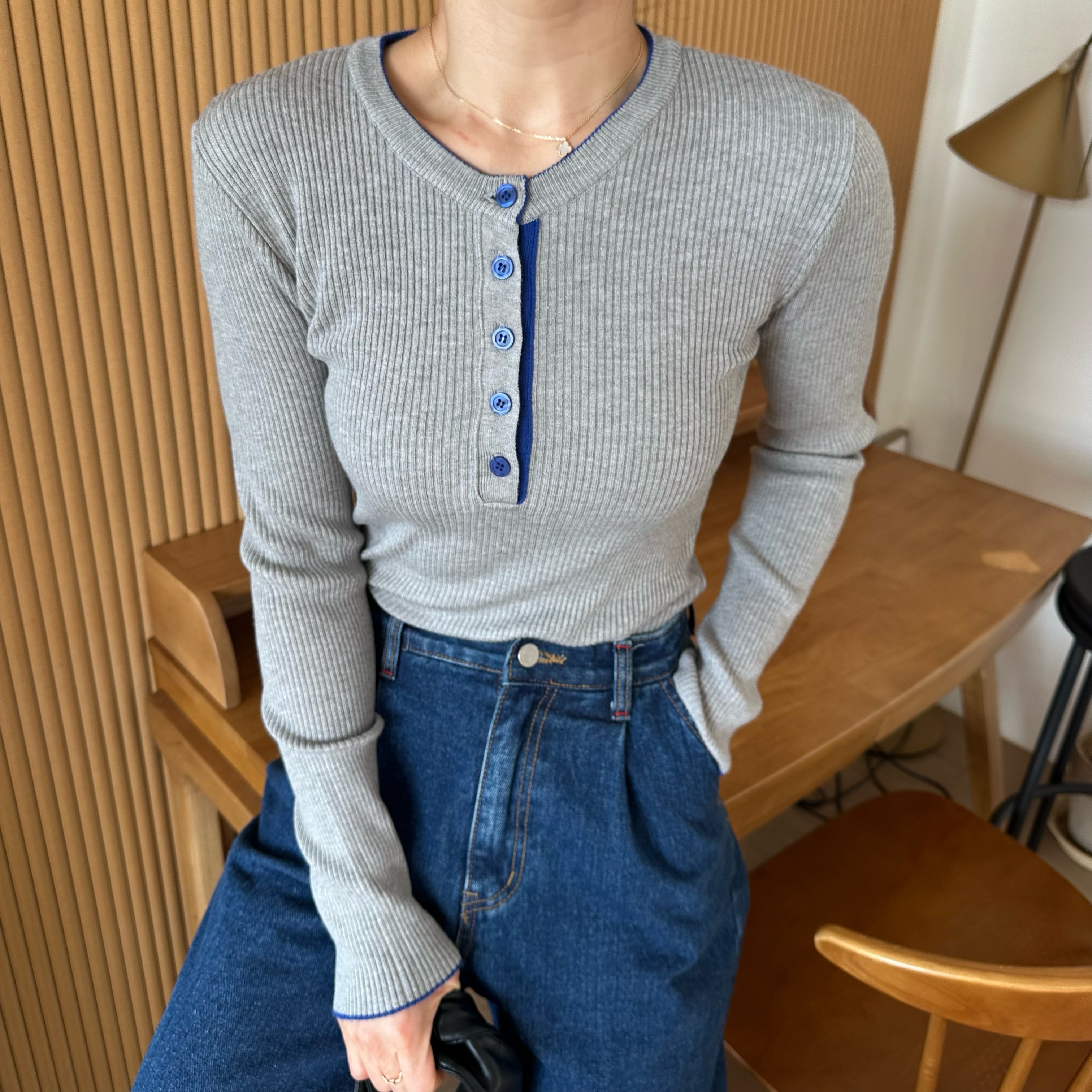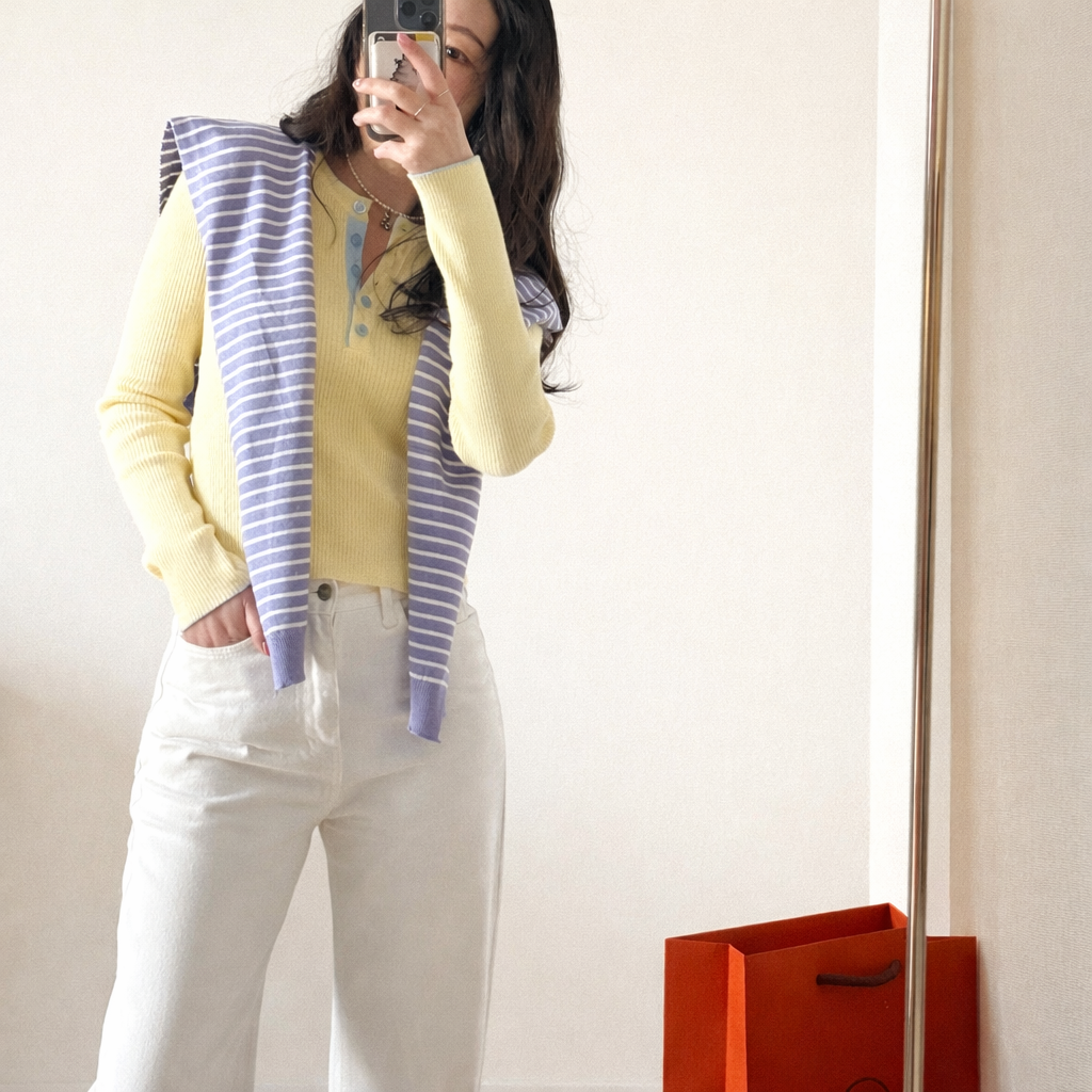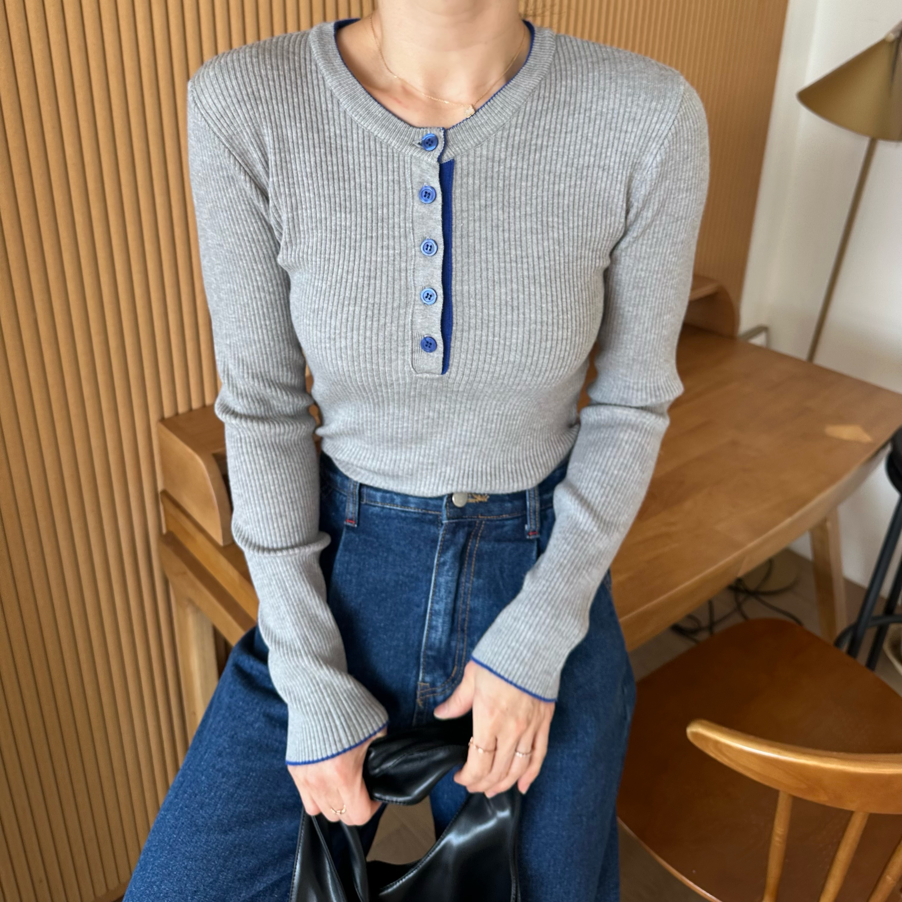 니트 한장만으로도 입는 순간