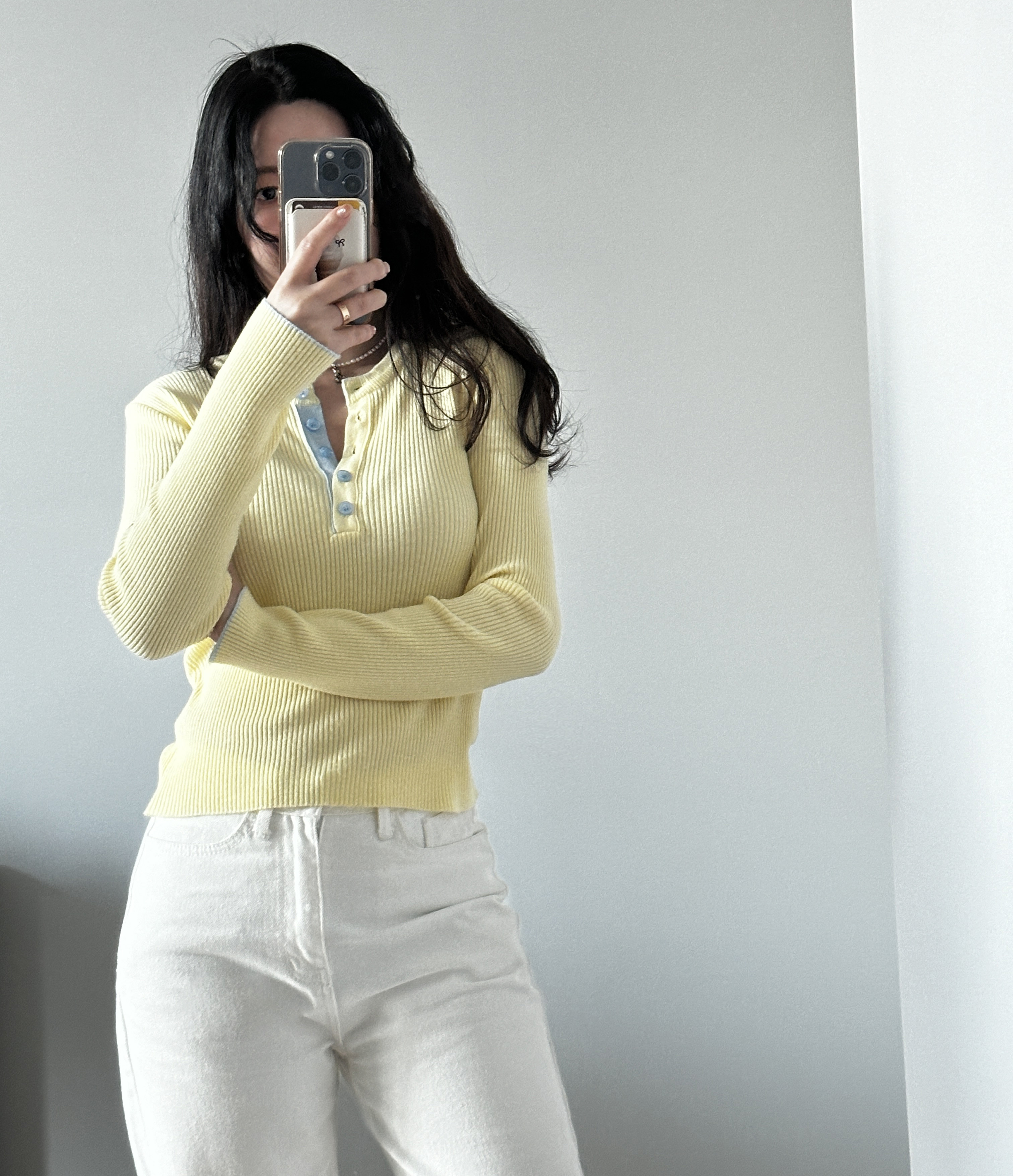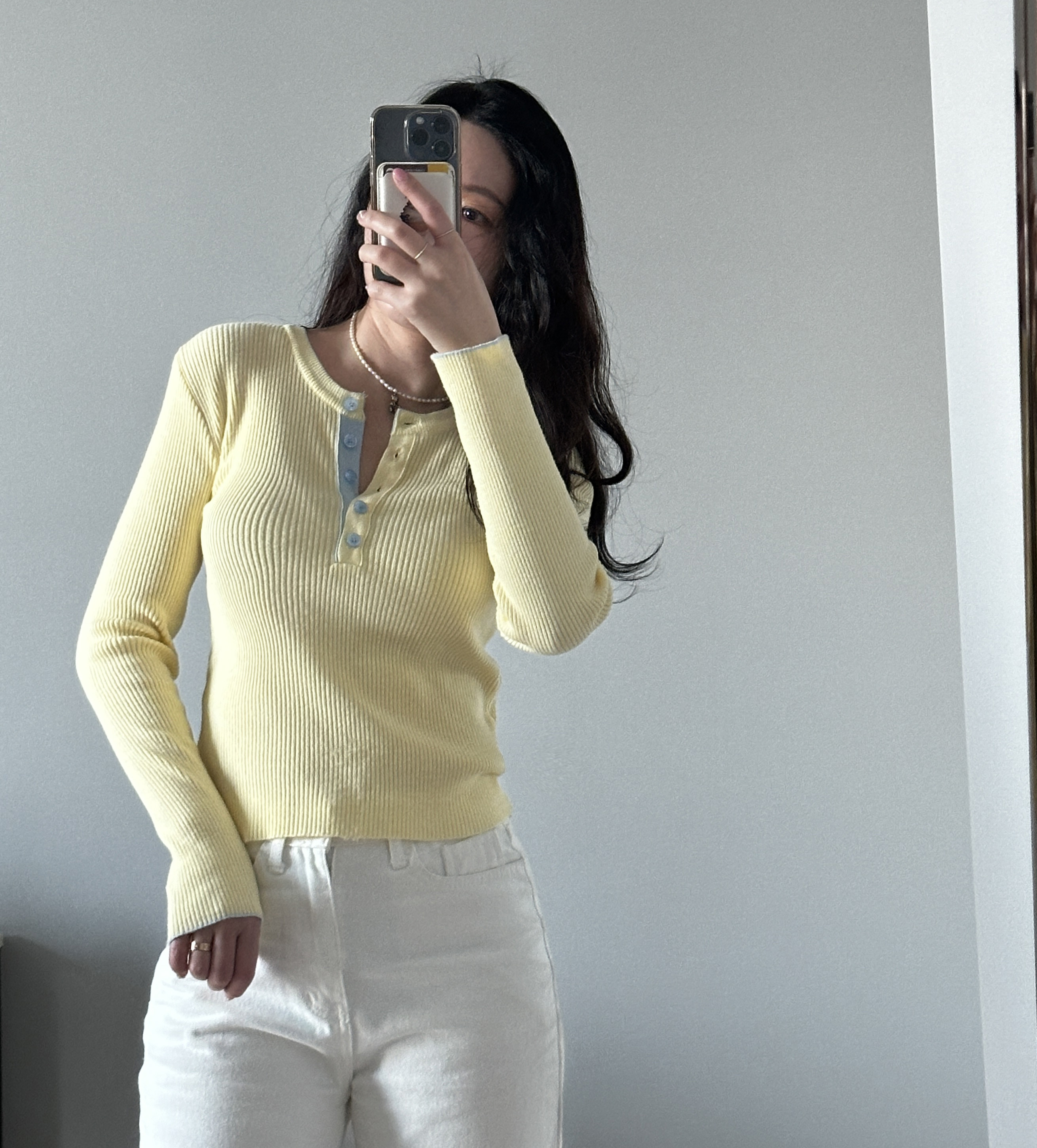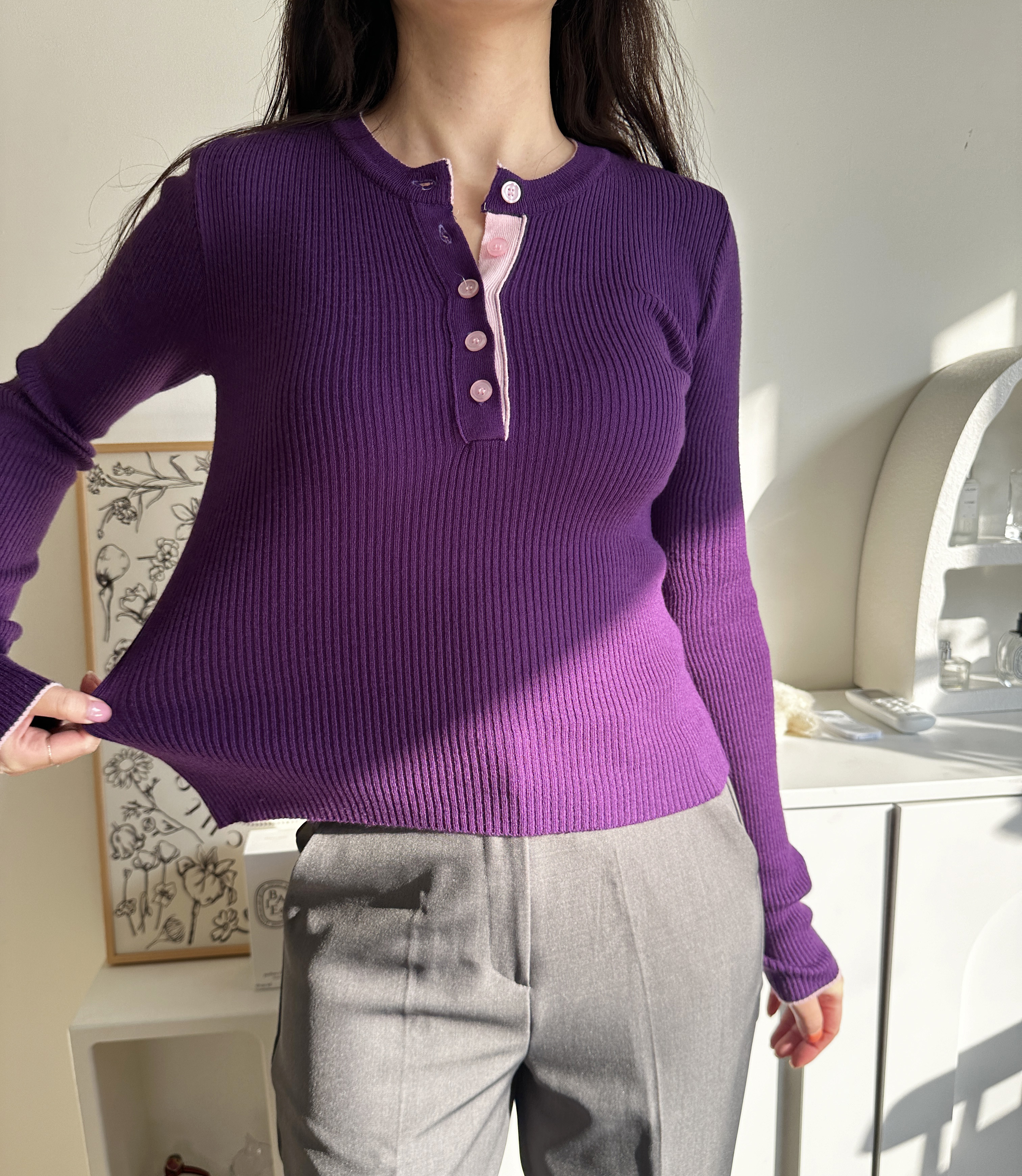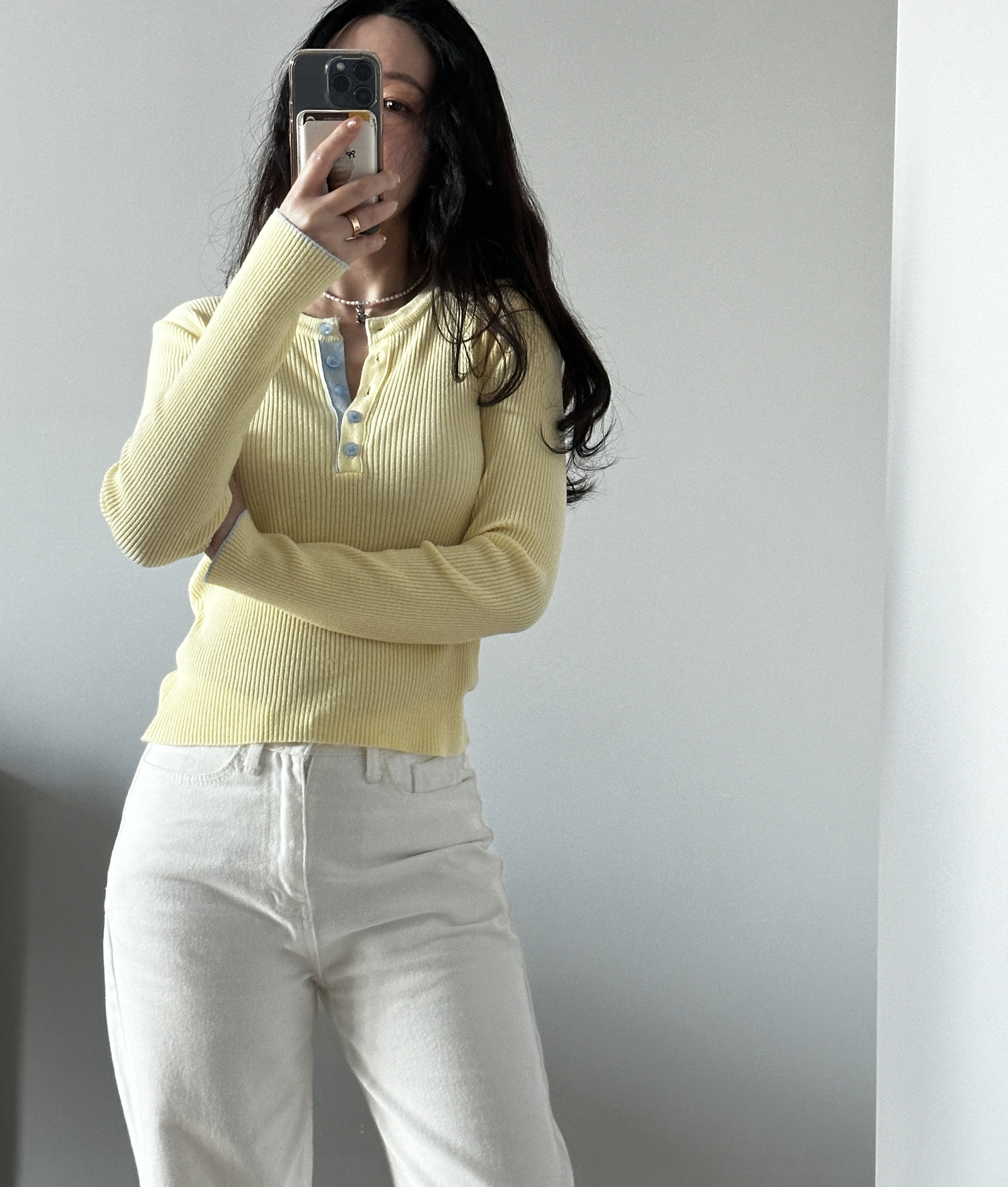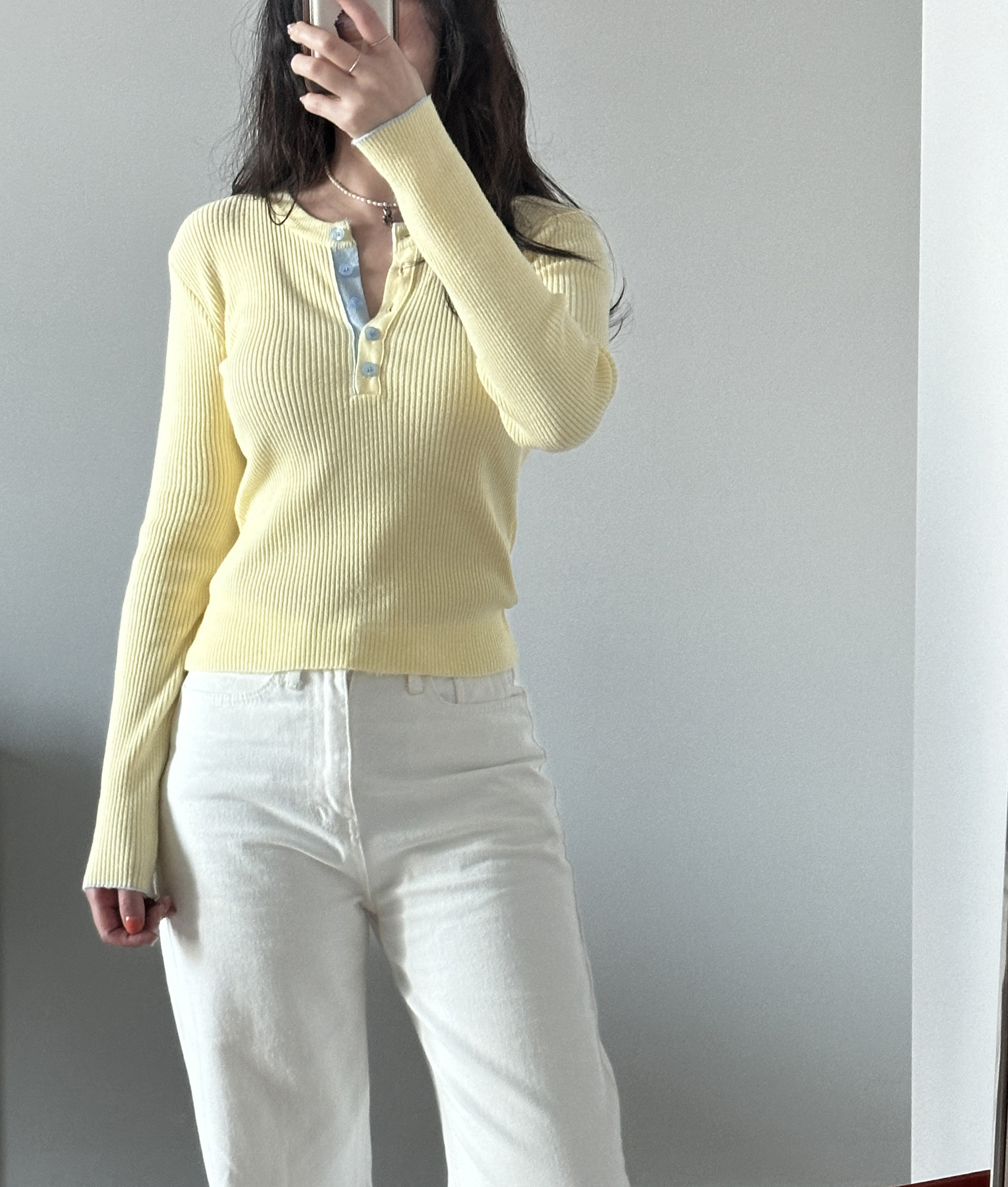니트 한장만으로도 입는 순간