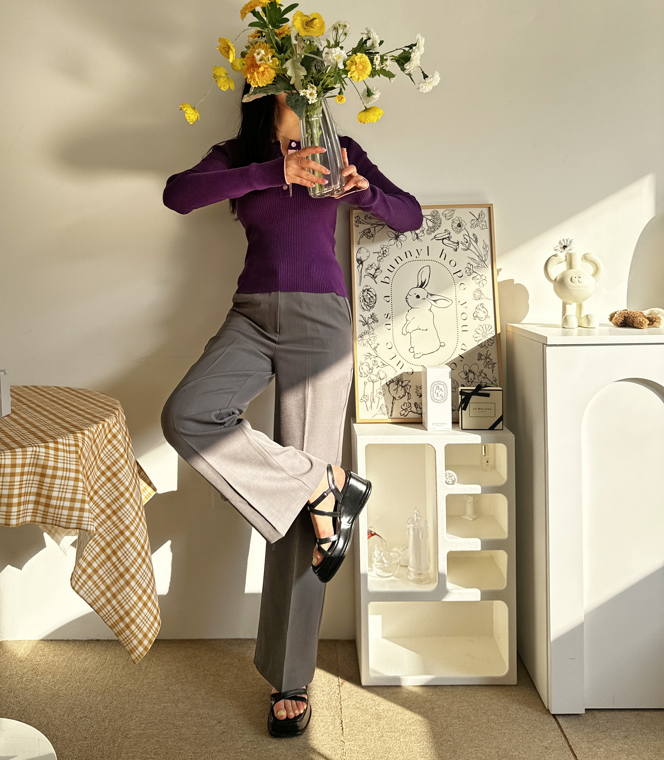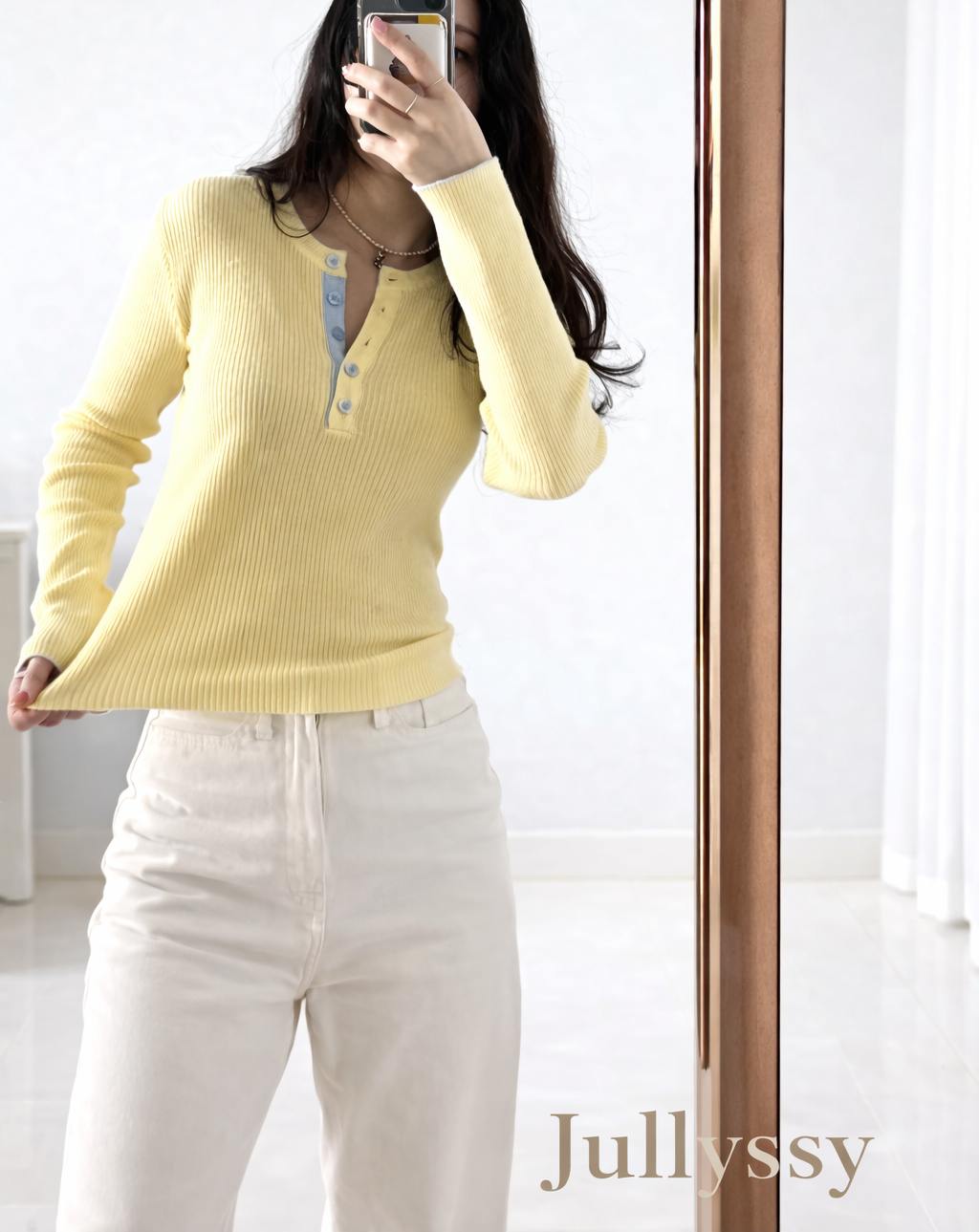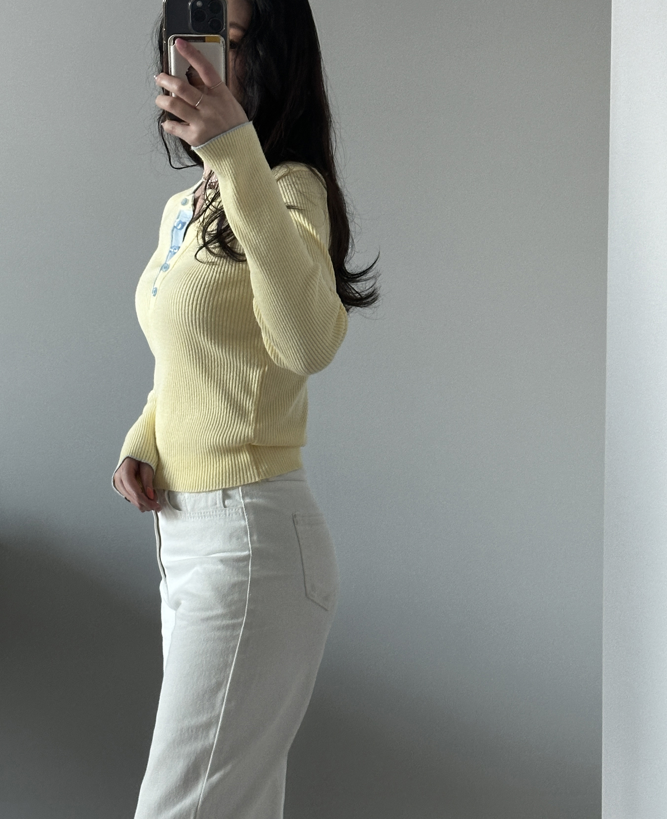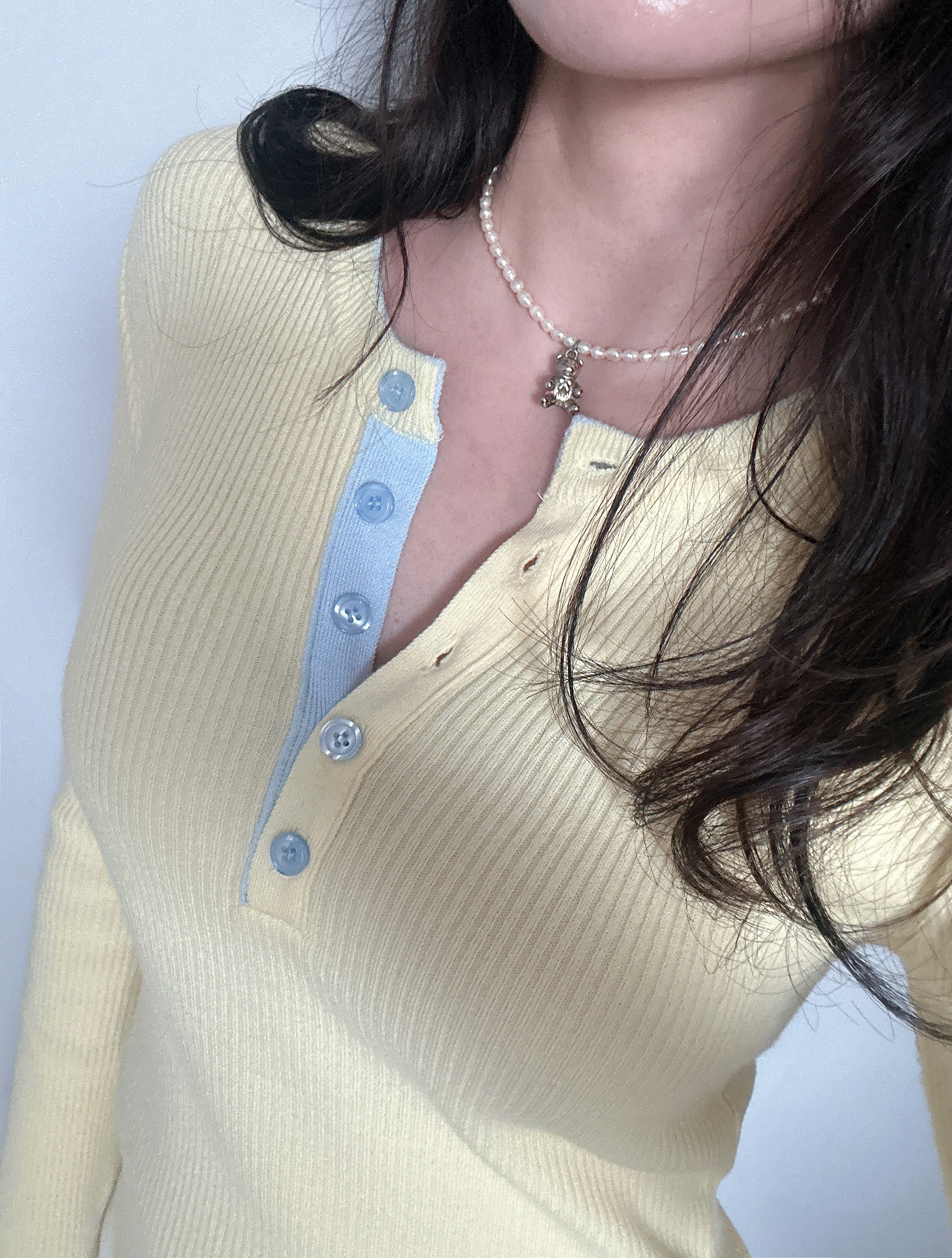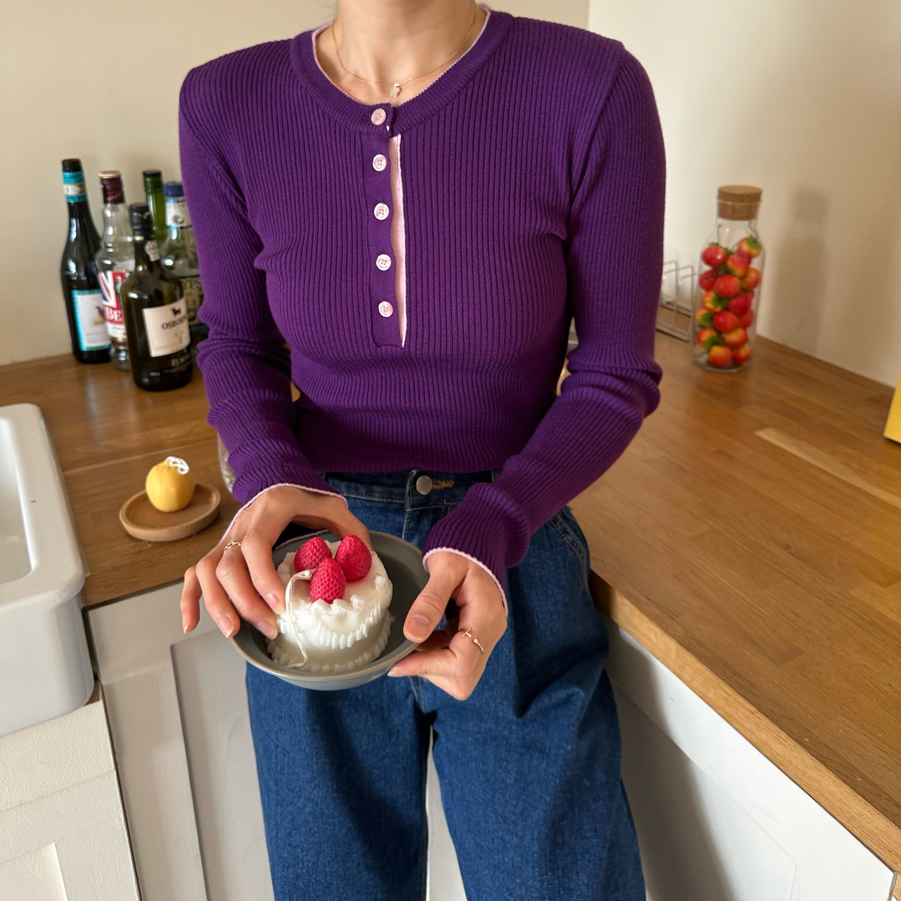 니트 한장만으로도 입는 순간
