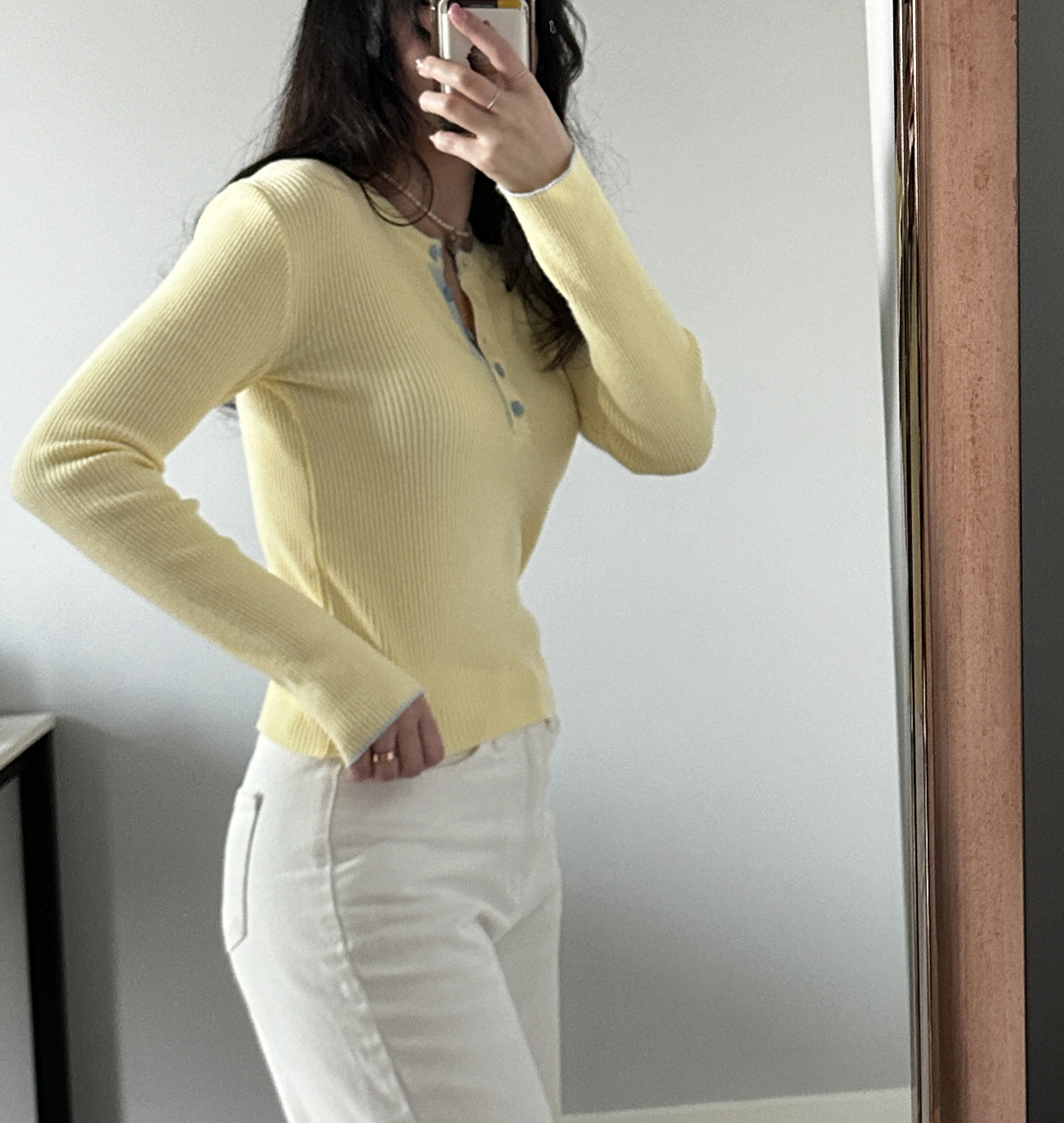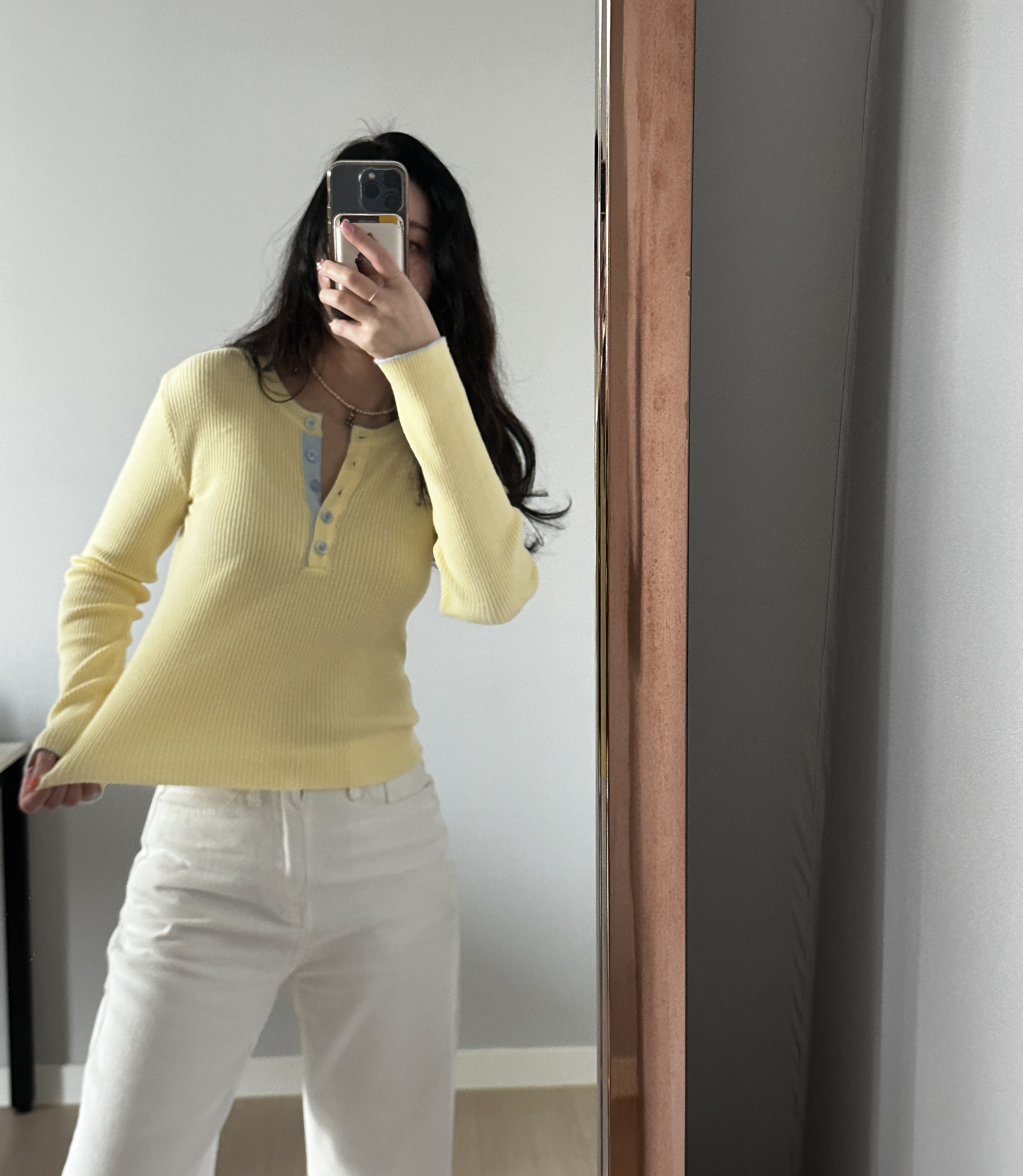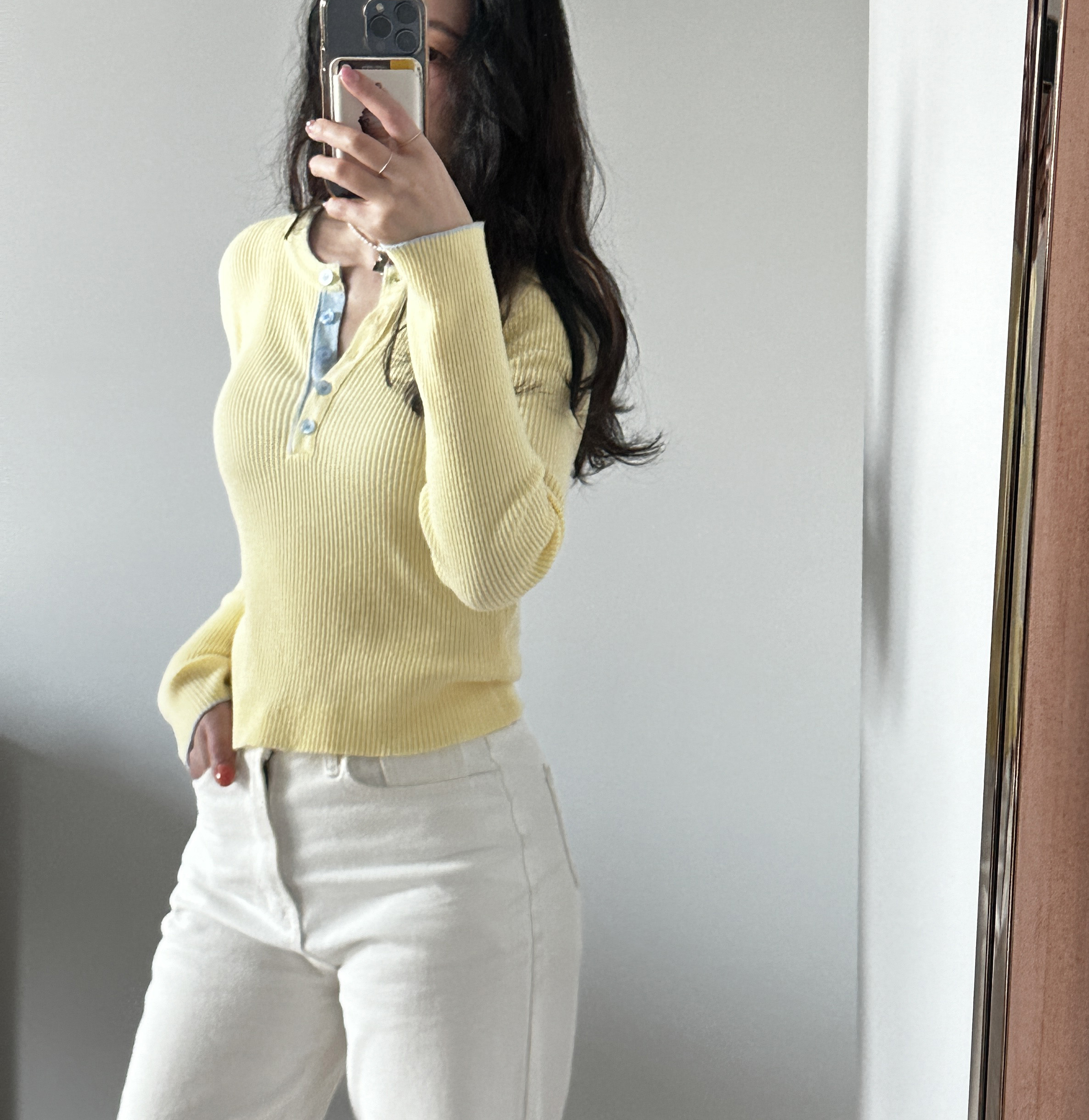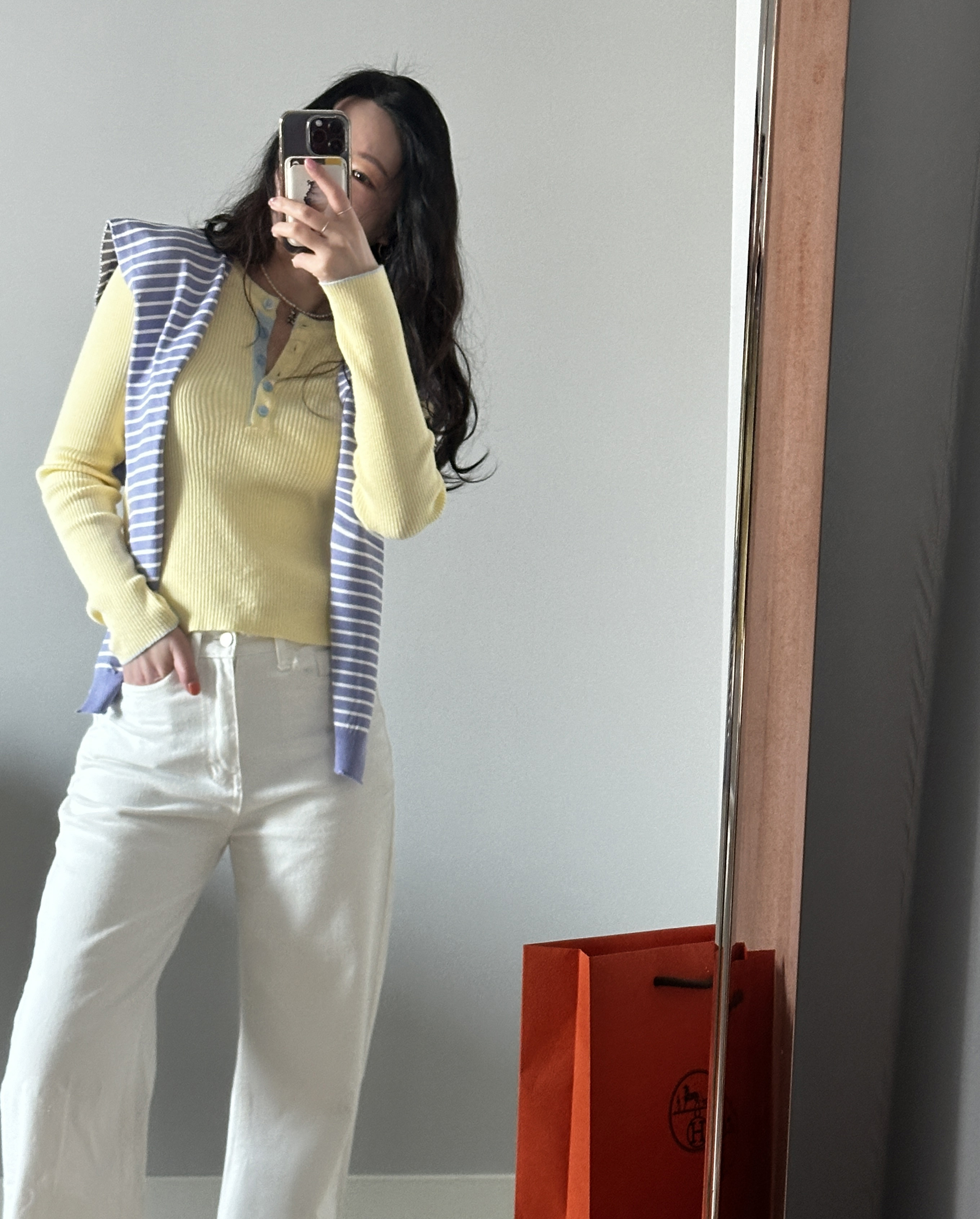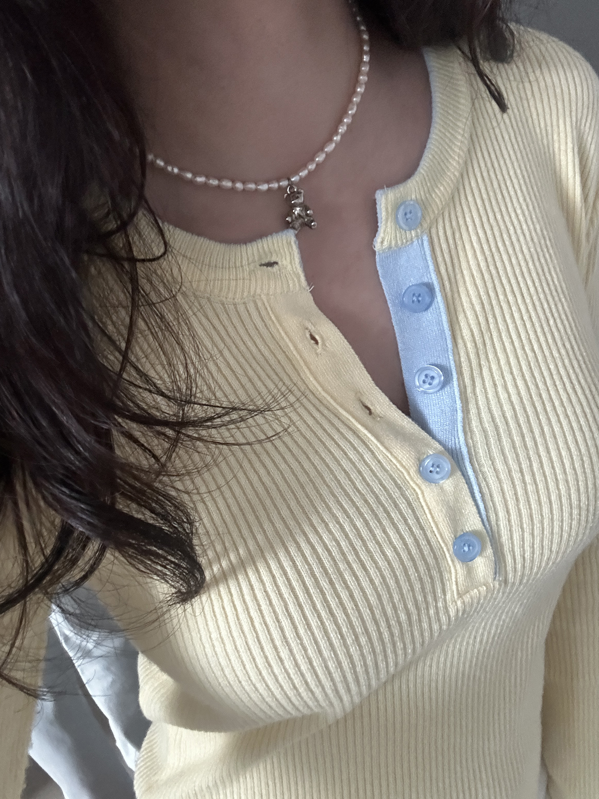 니트 한장만으로도 입는 순간