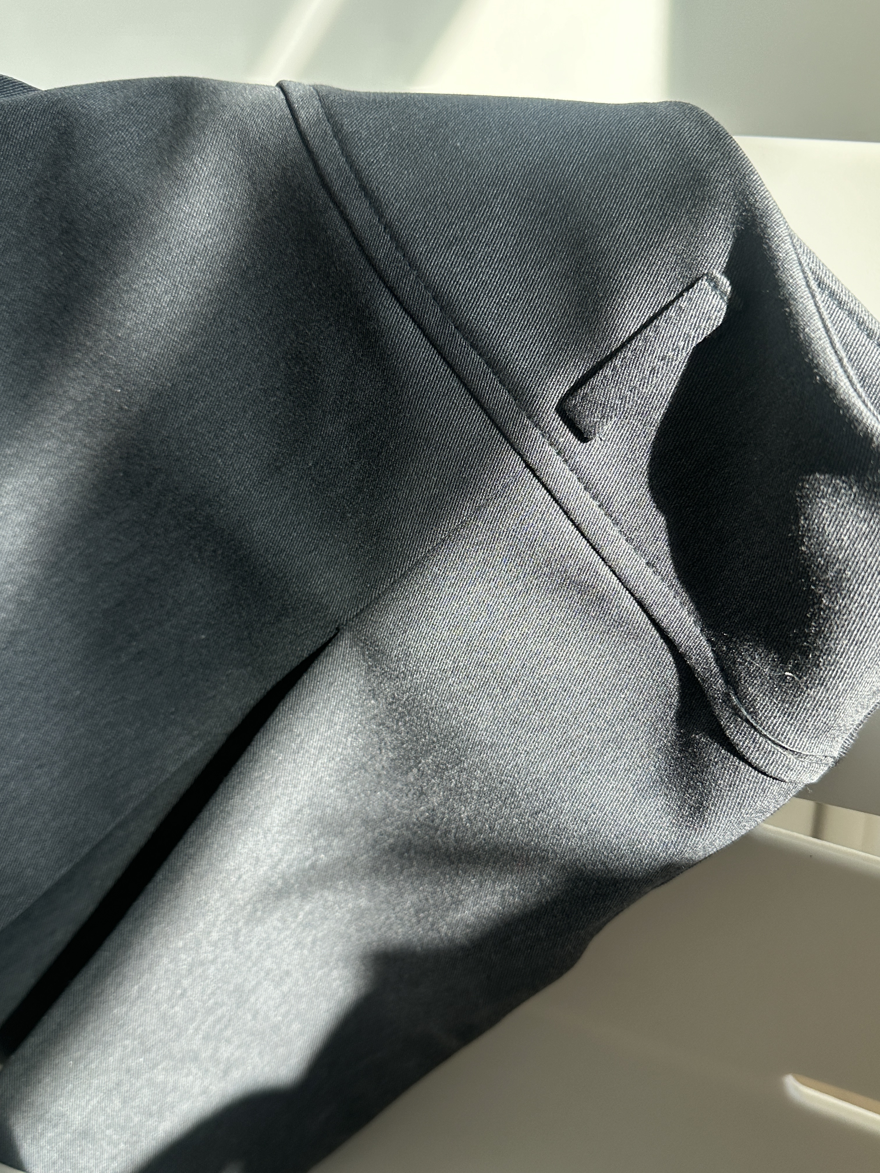 힘 있는 소재와 깊은 핀턱 주름으로