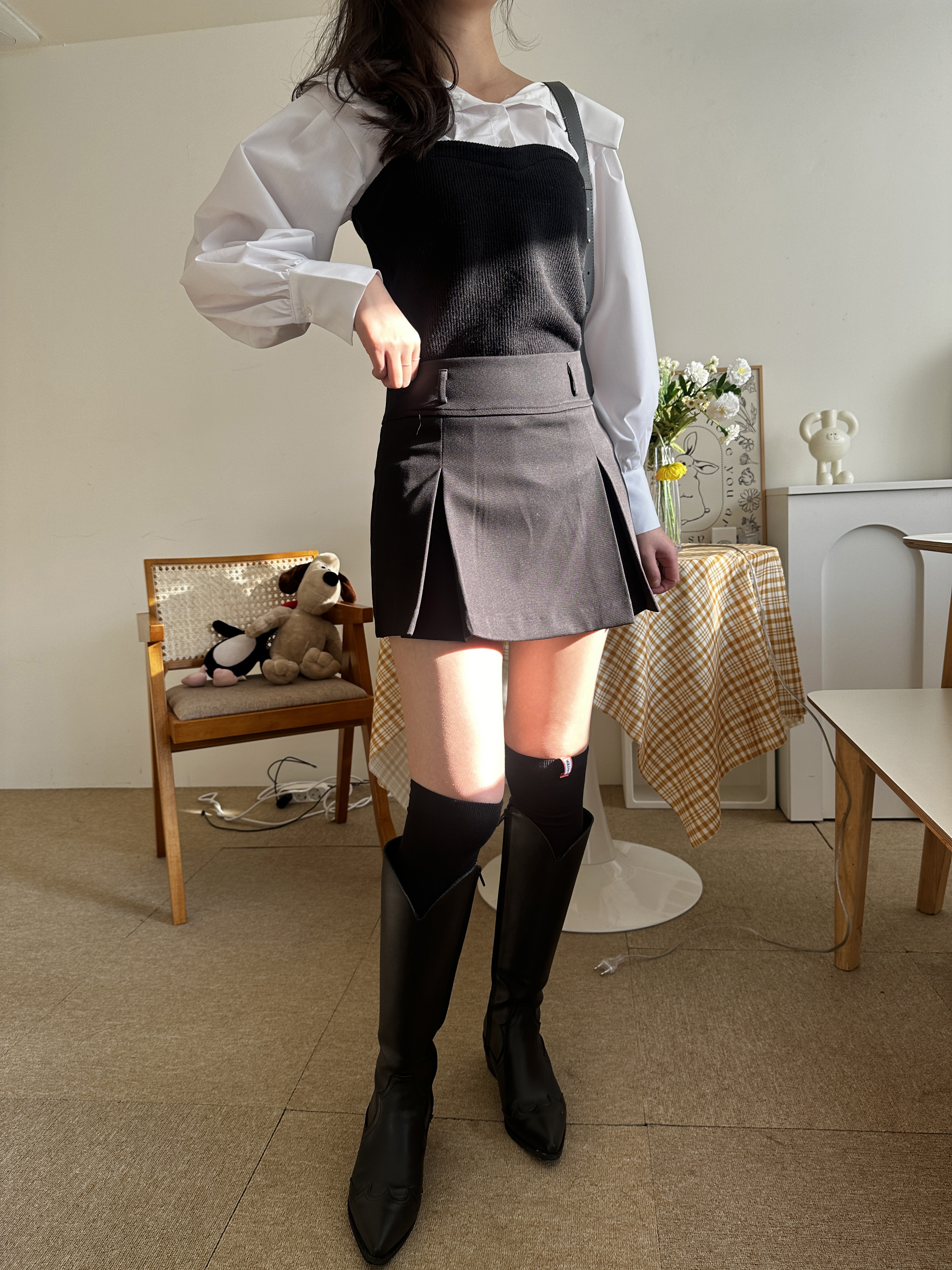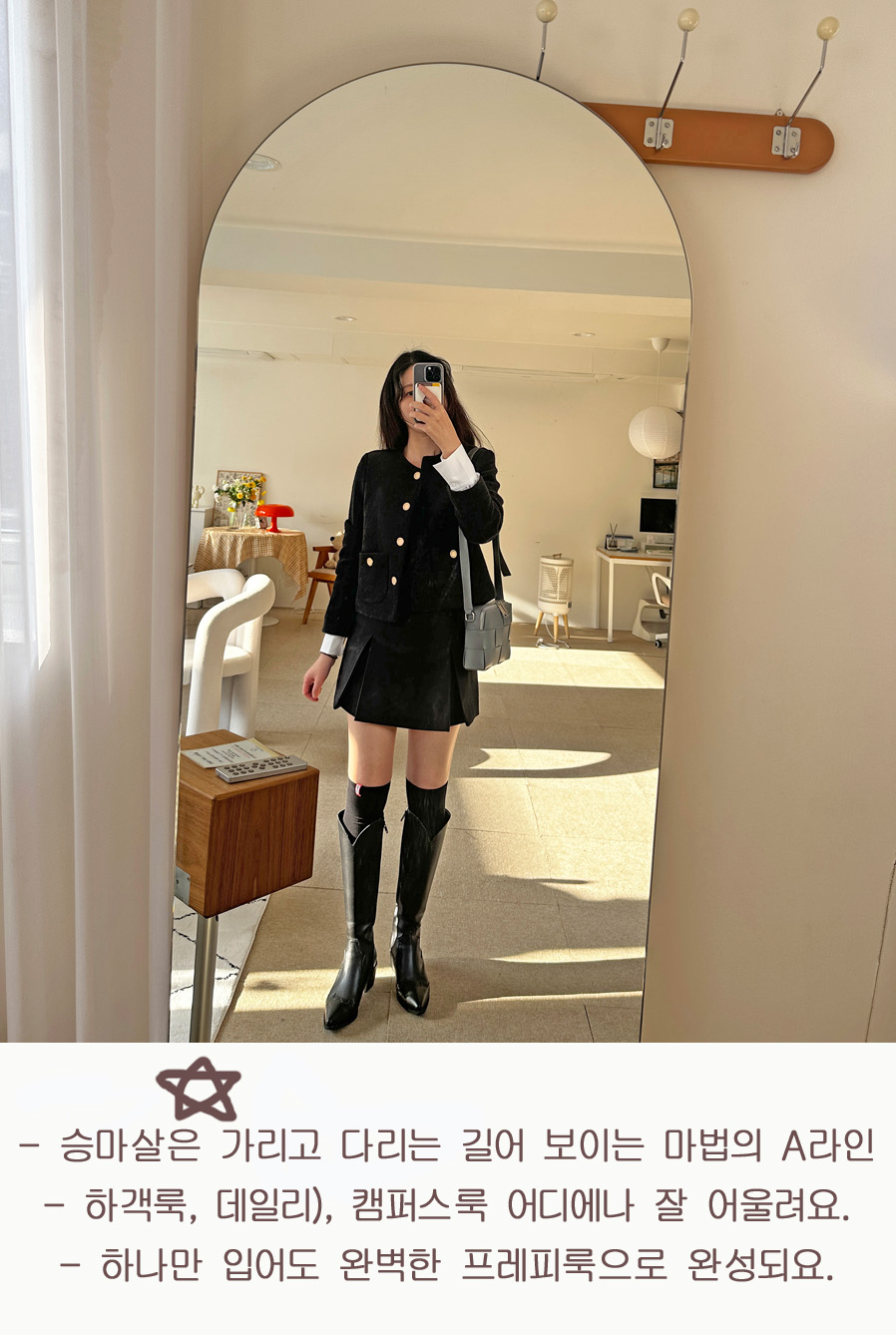 롱부츠와 매치했을 때 예쁜 비율을 완성합니다.