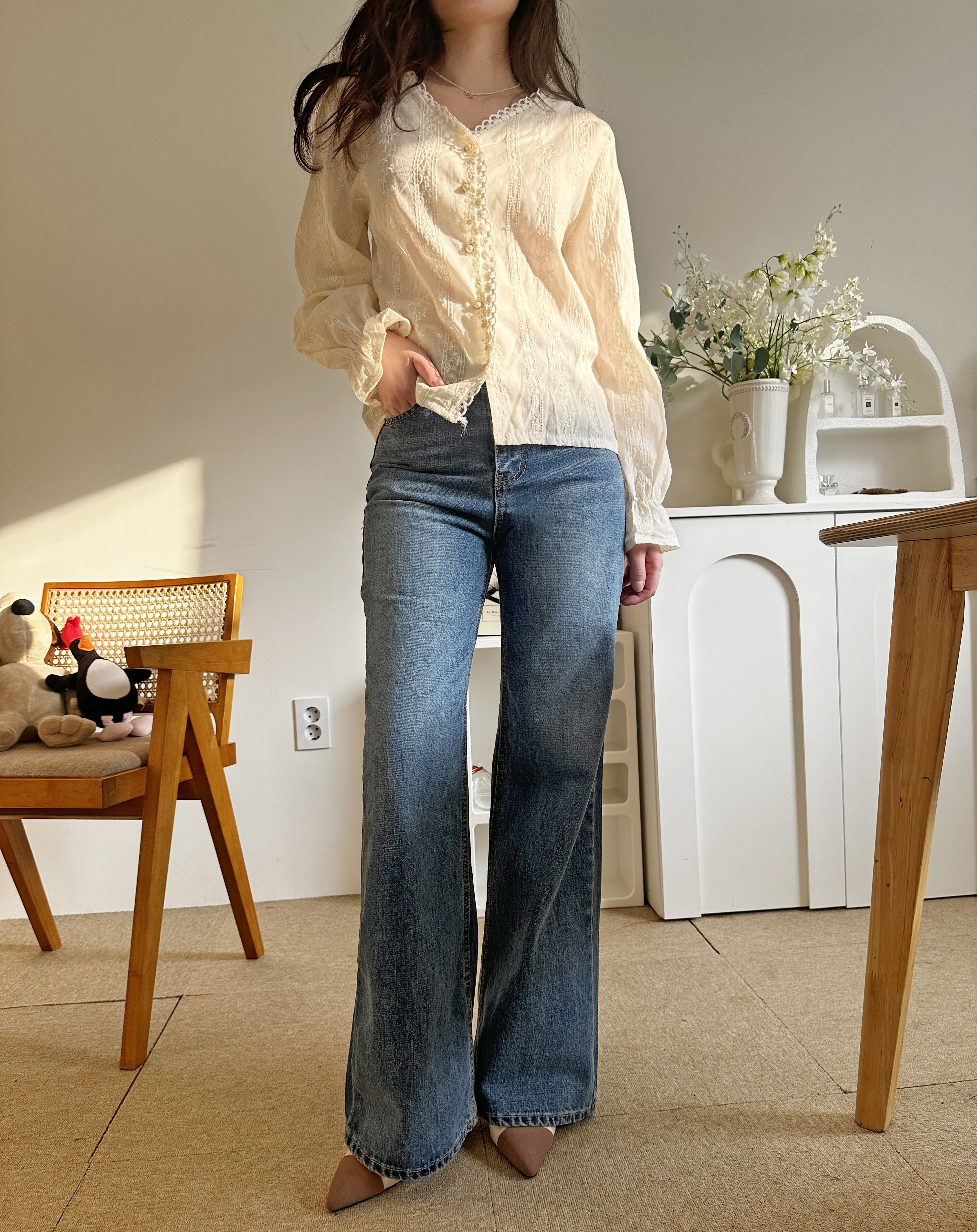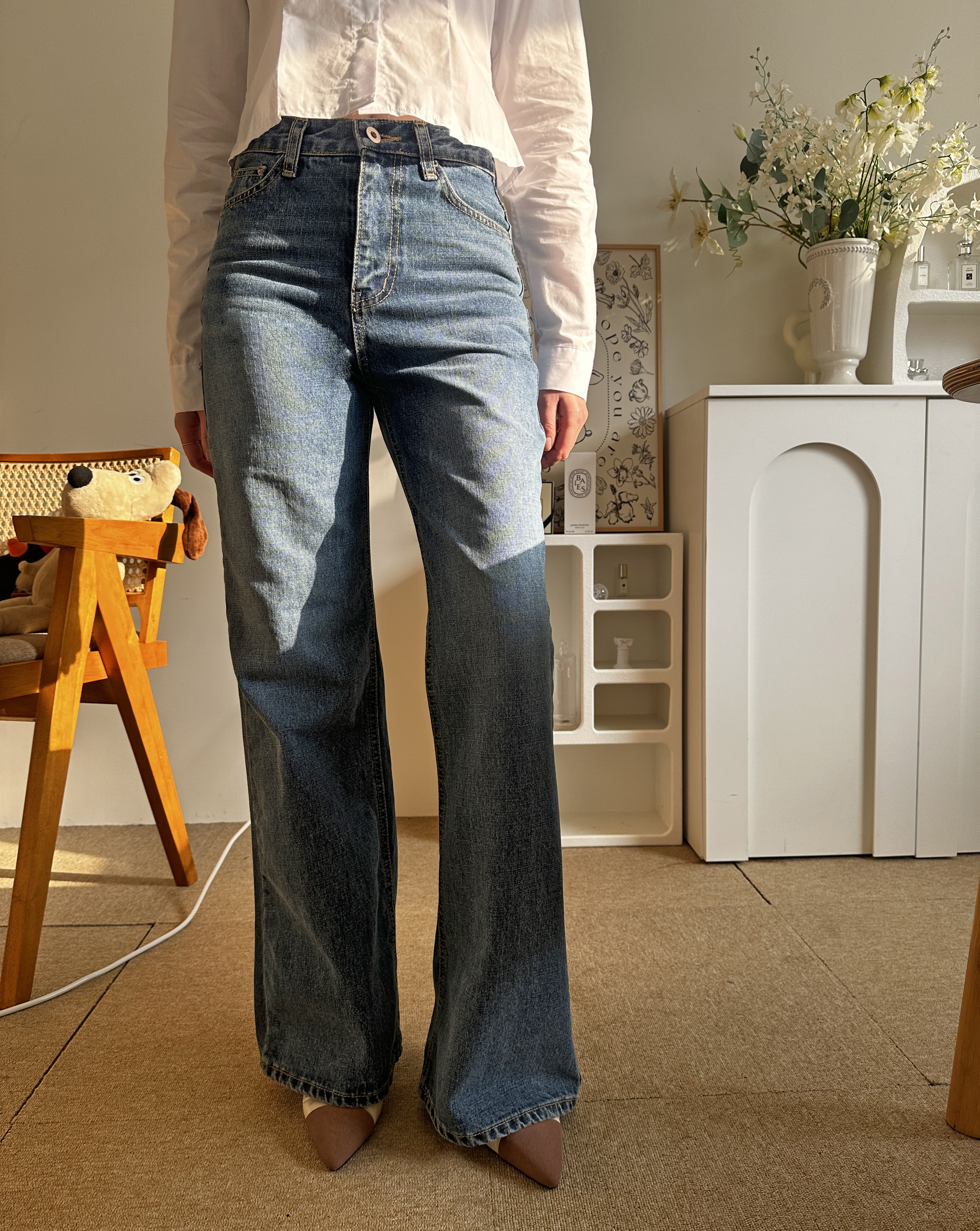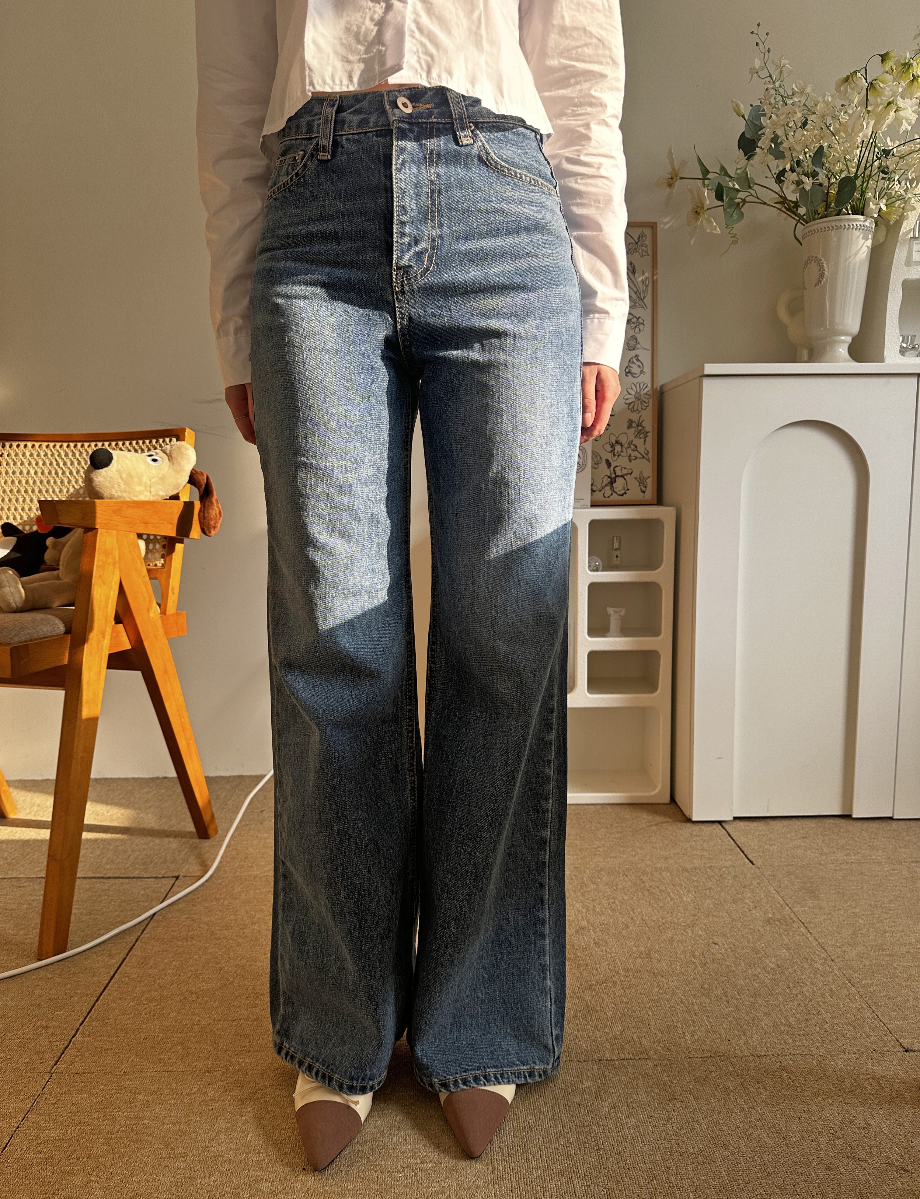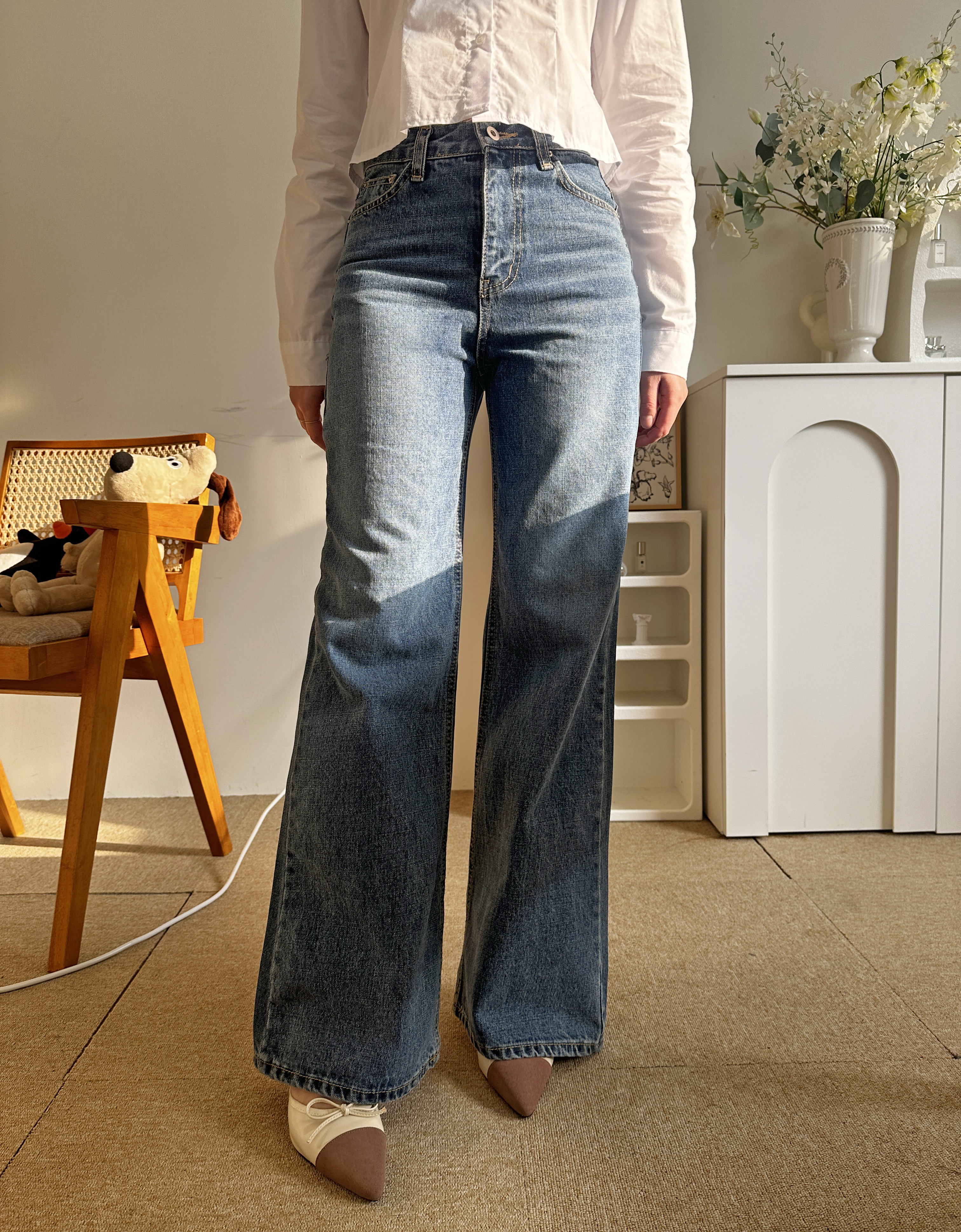다리가 얇아 보이는 빈티지한 중청 컬러
