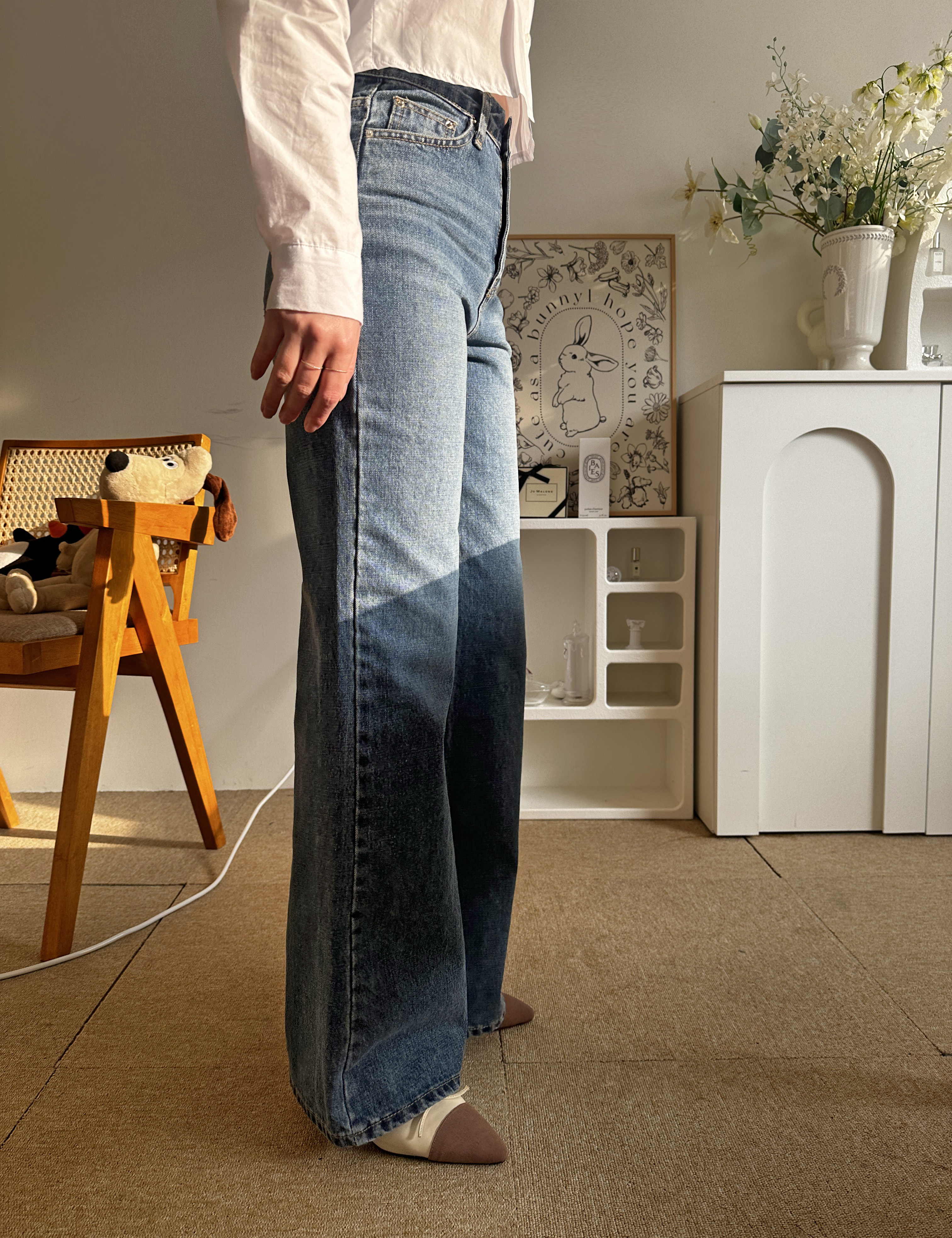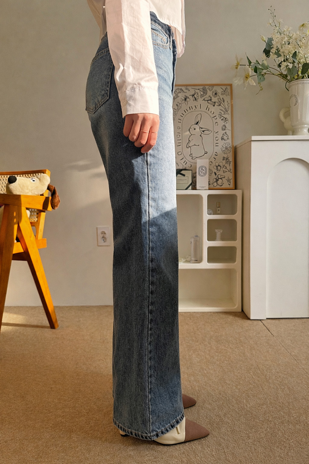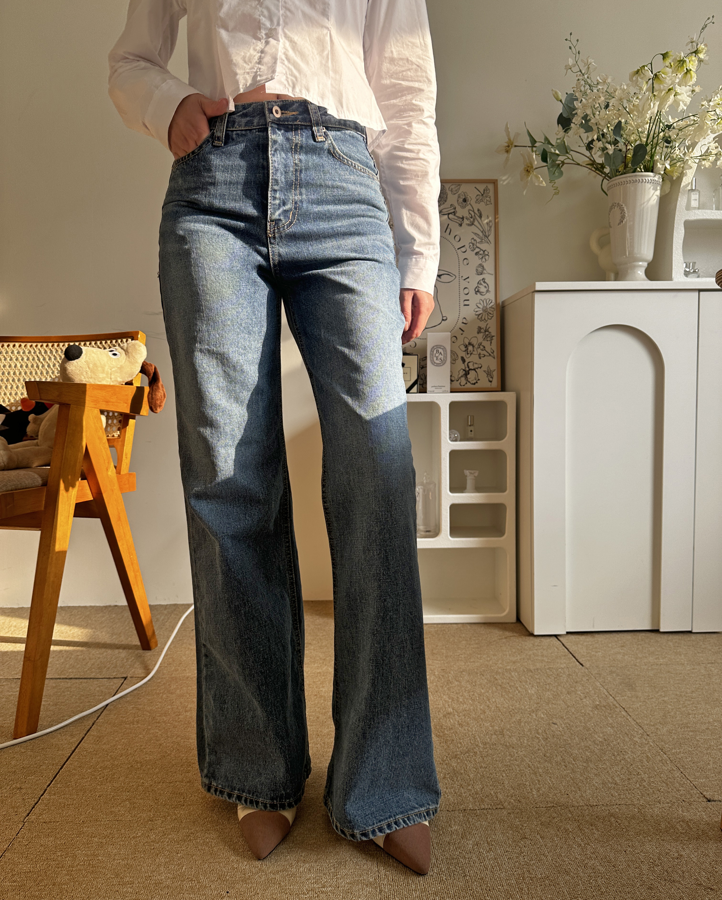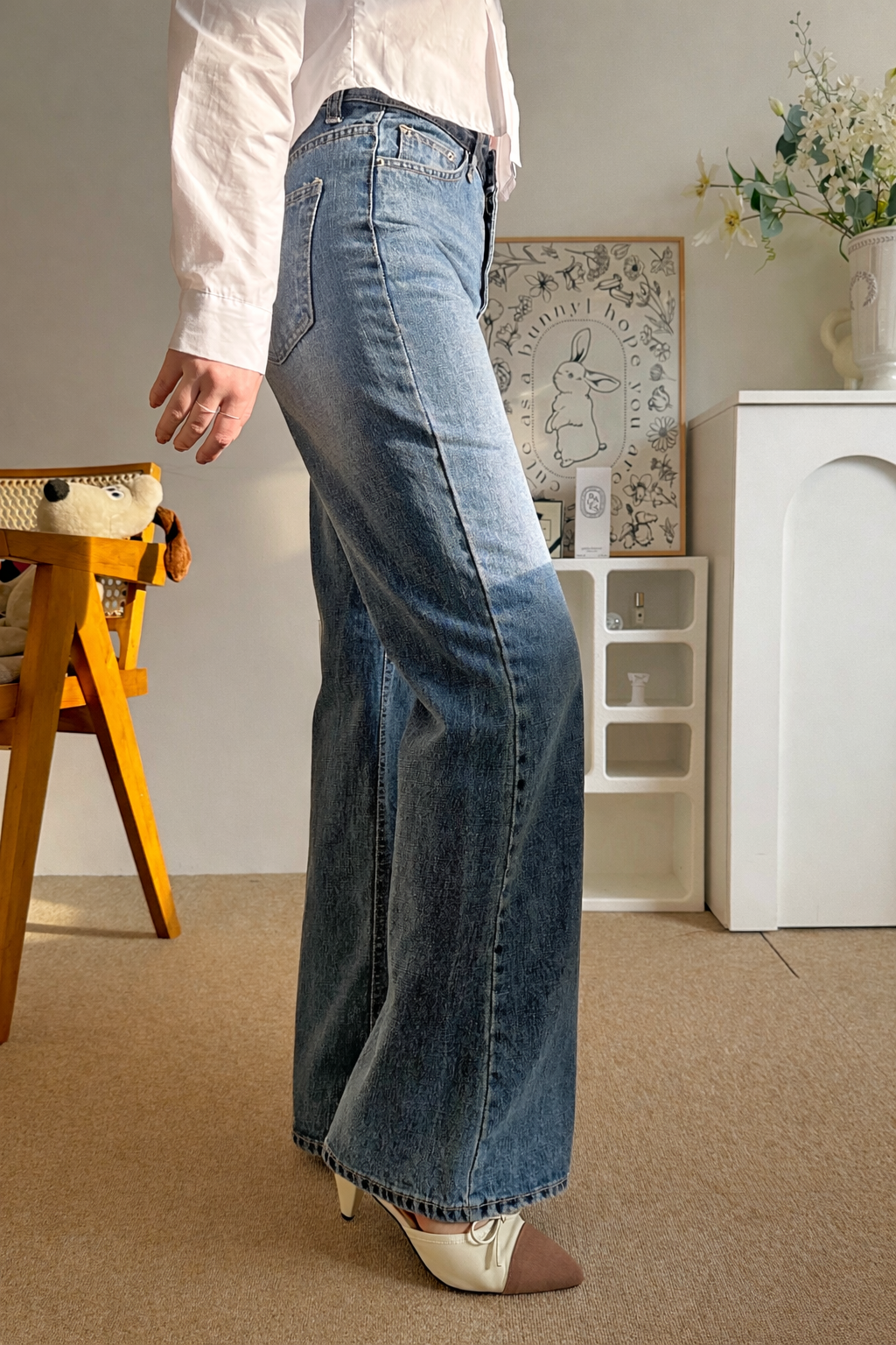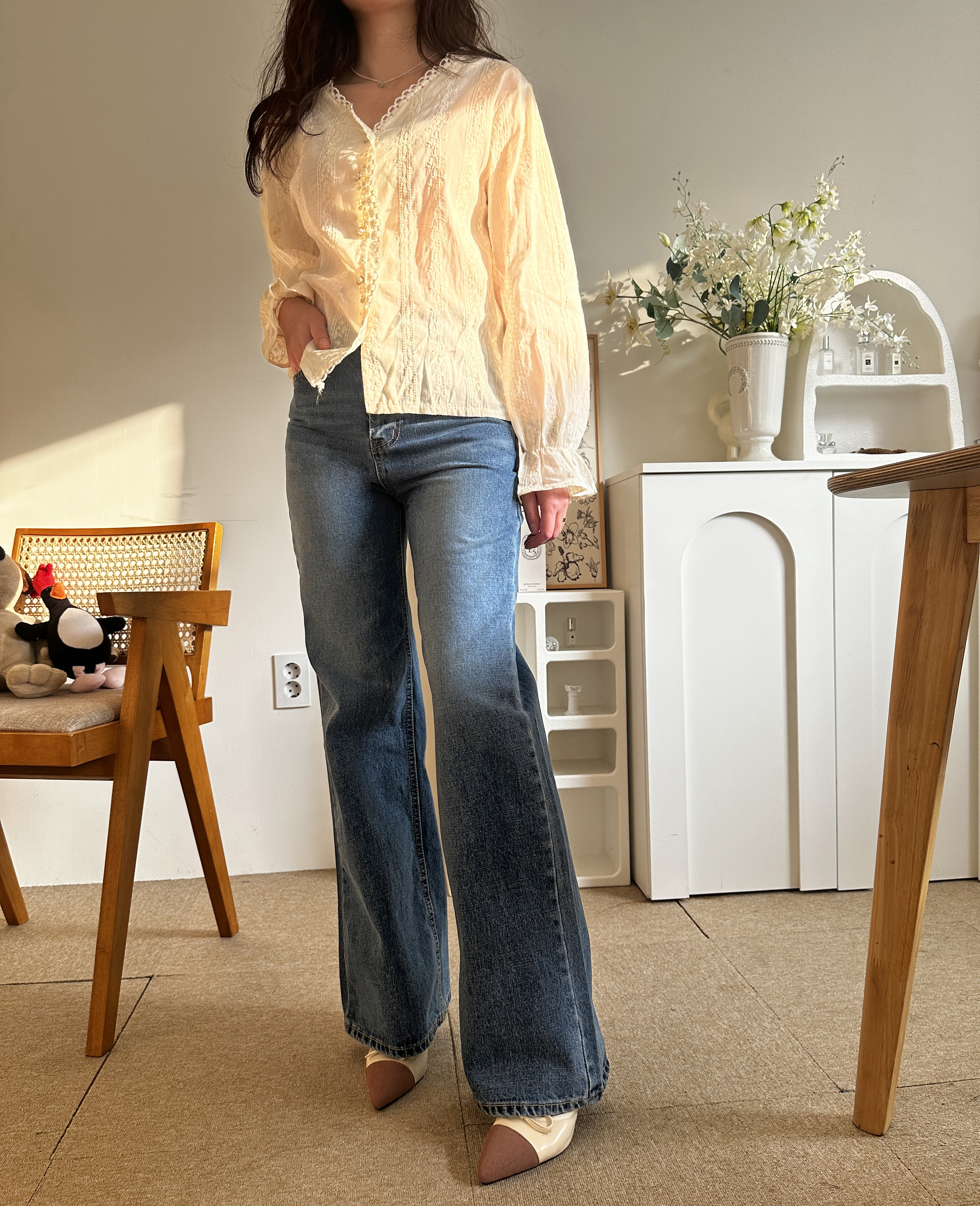 다리가 얇아 보이는 빈티지한 중청 컬러