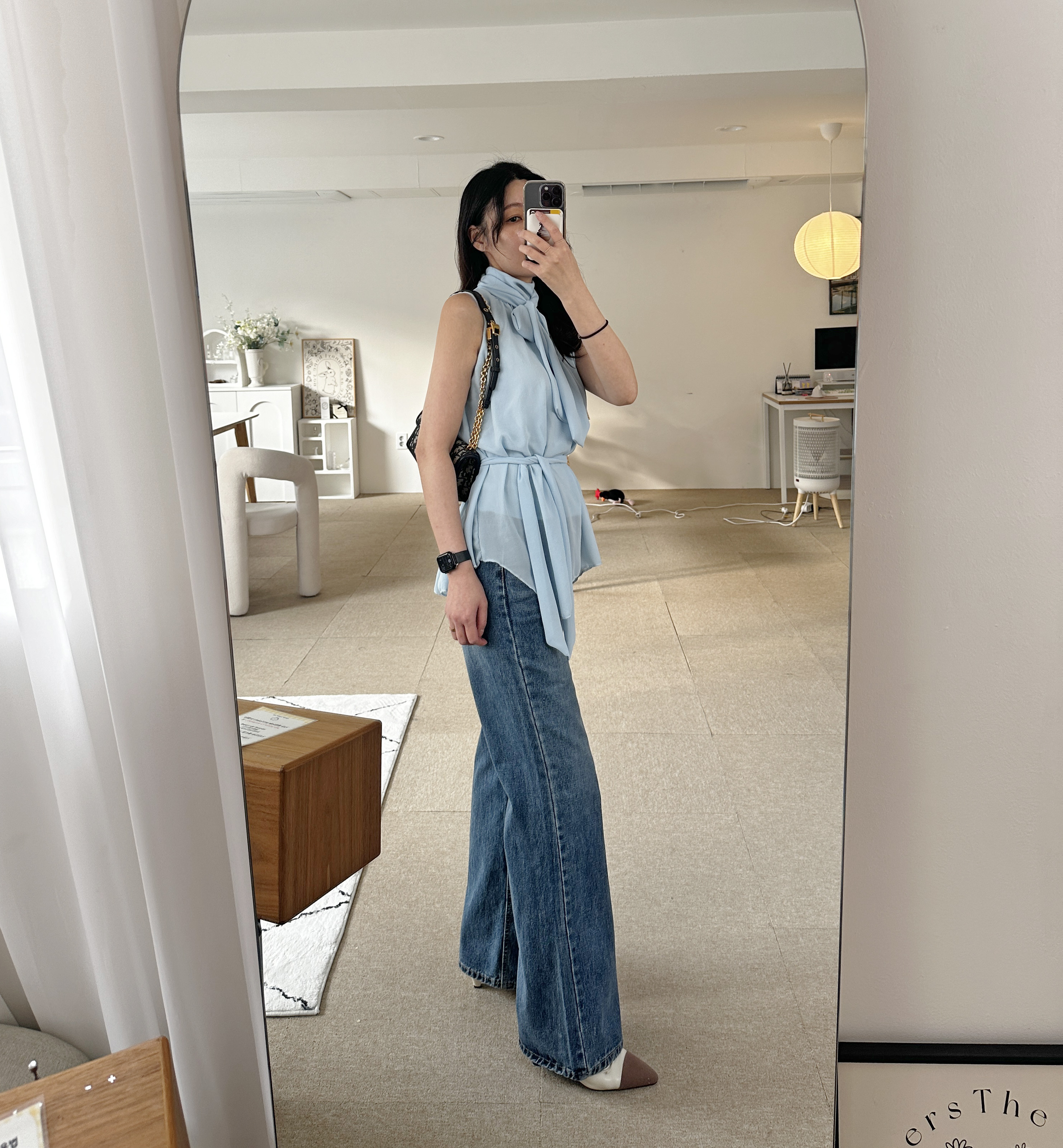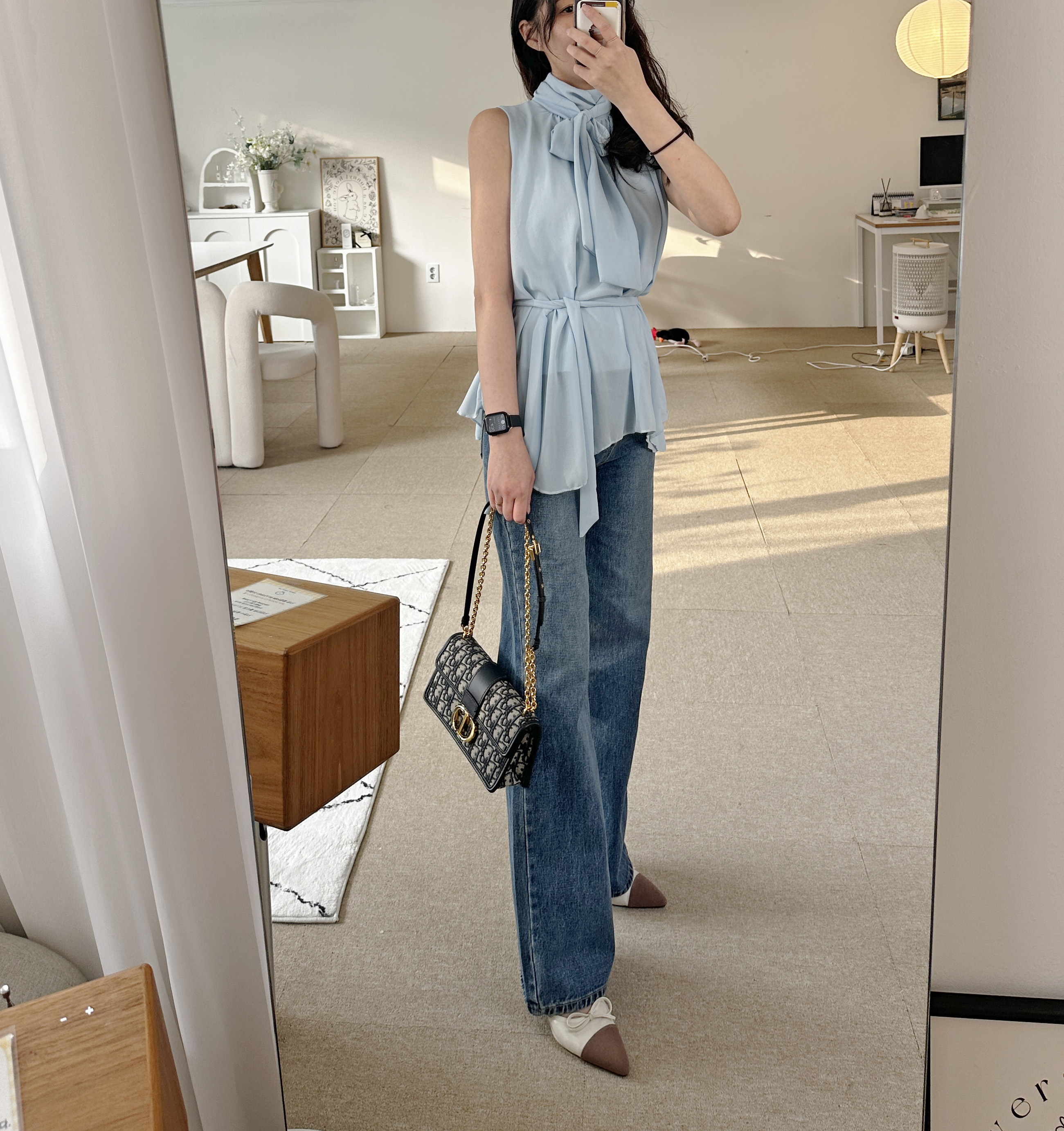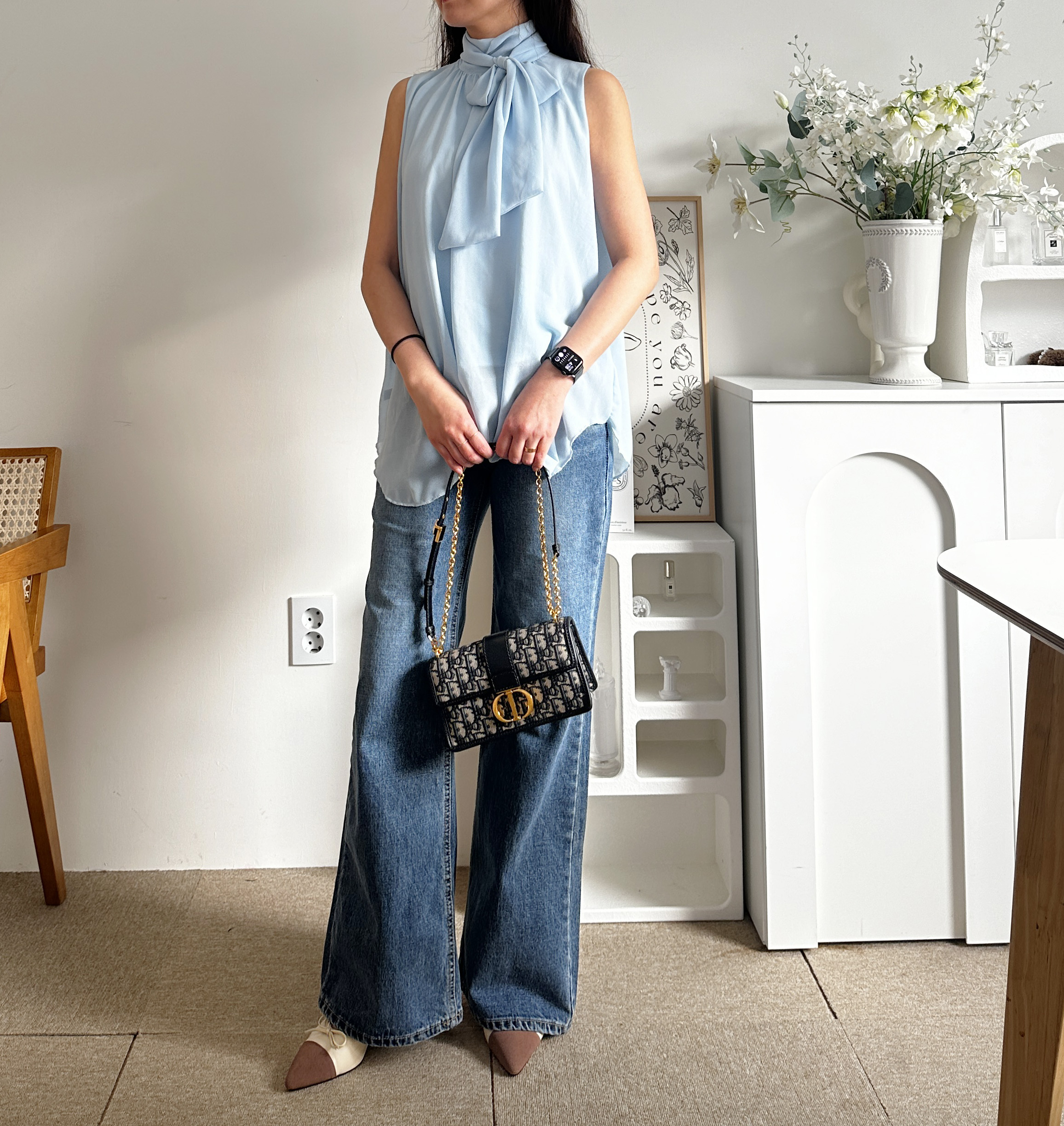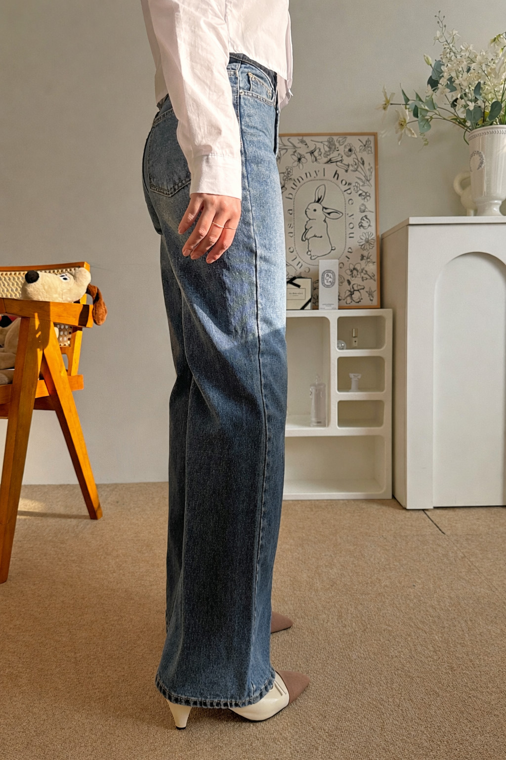 다리가 얇아 보이는 빈티지한 중청 컬러