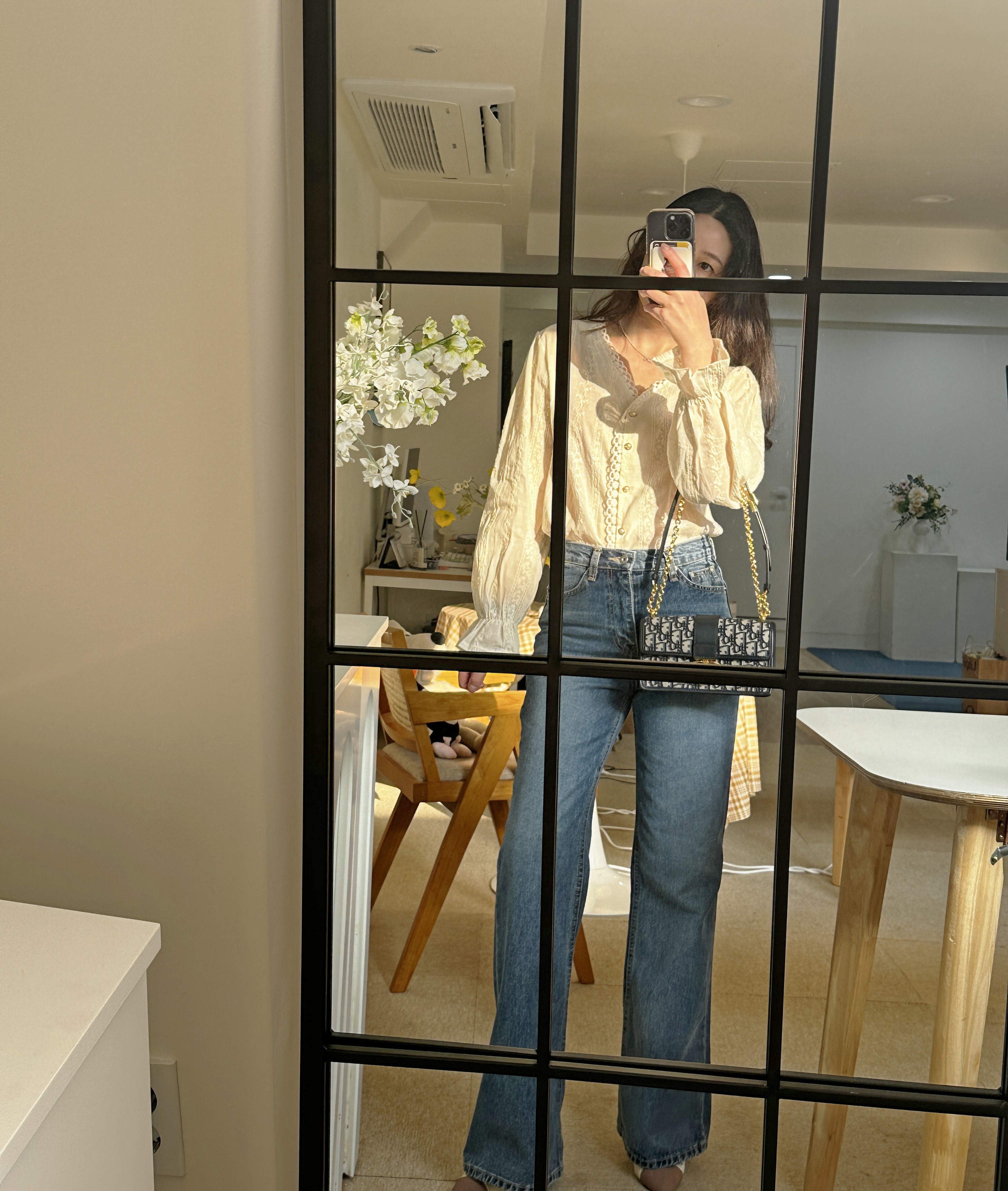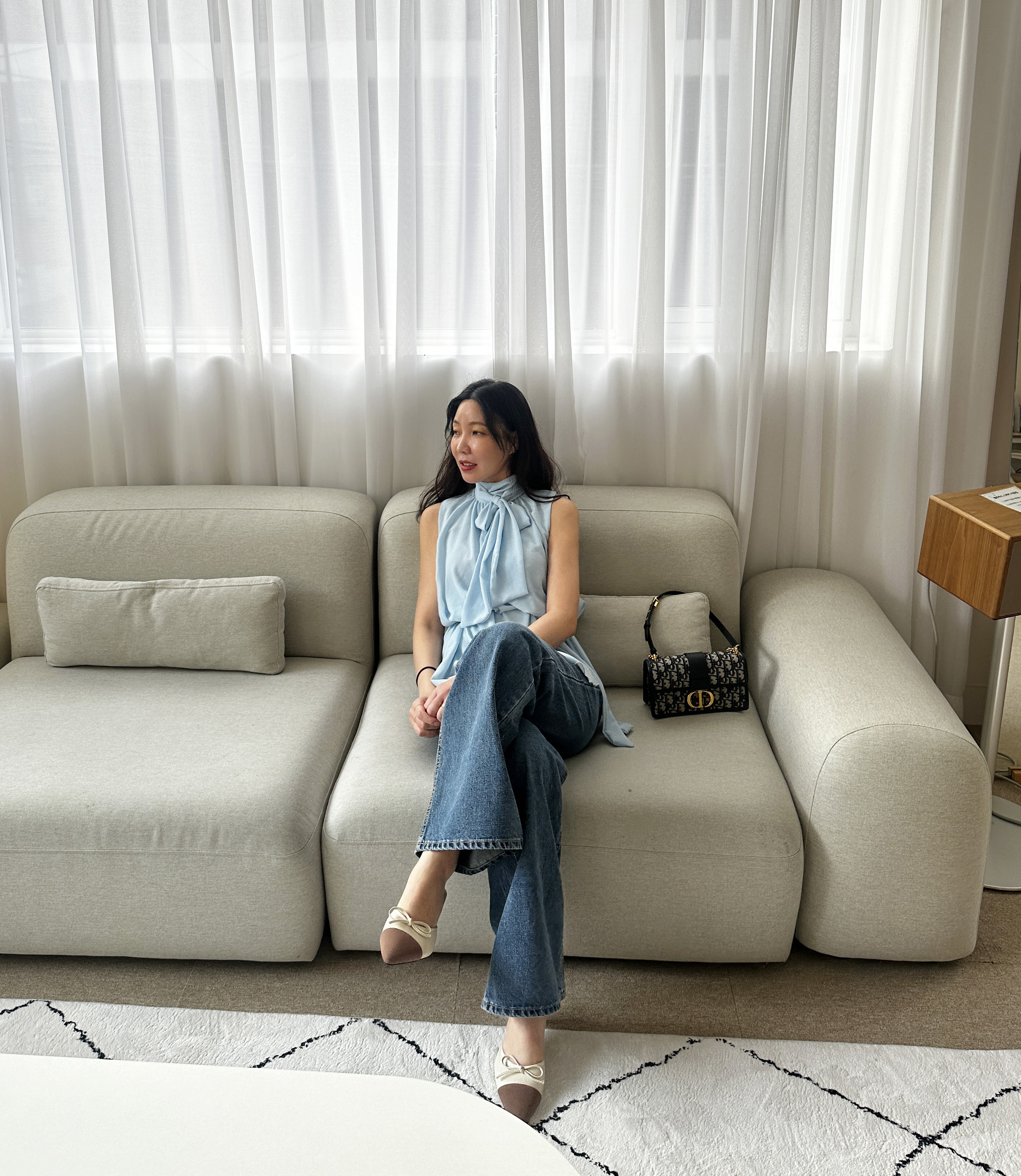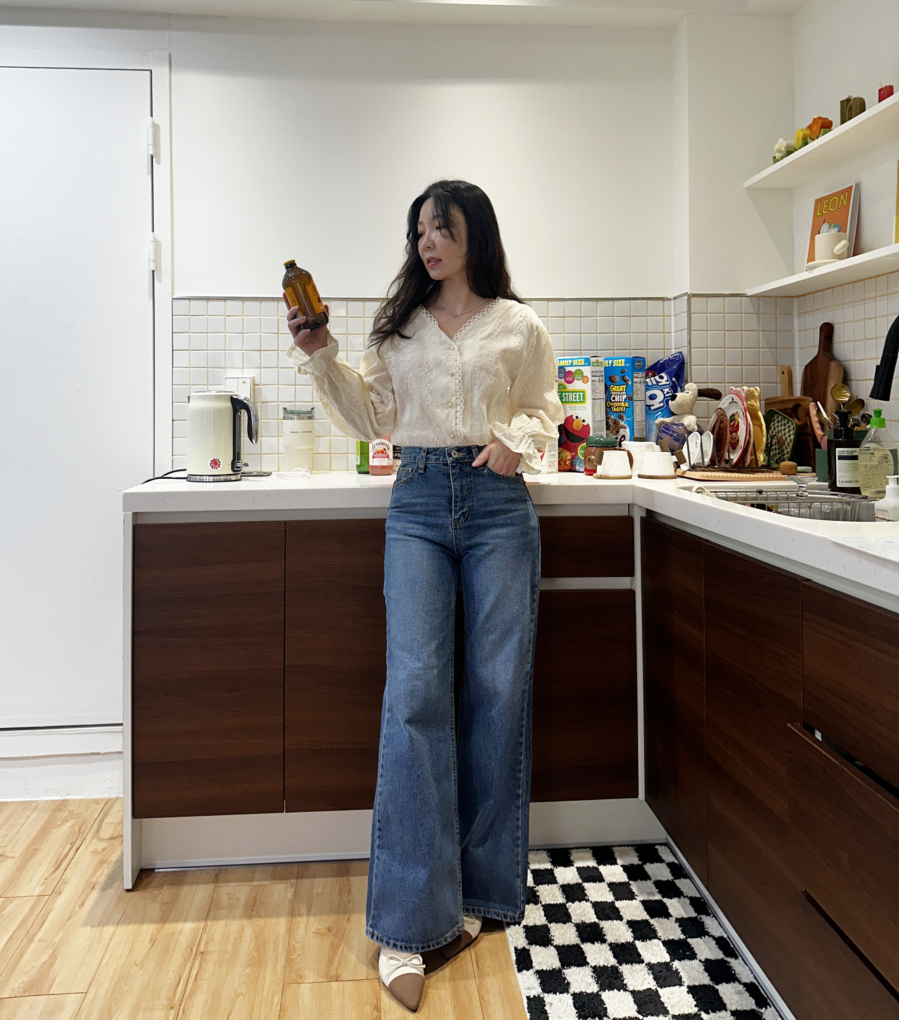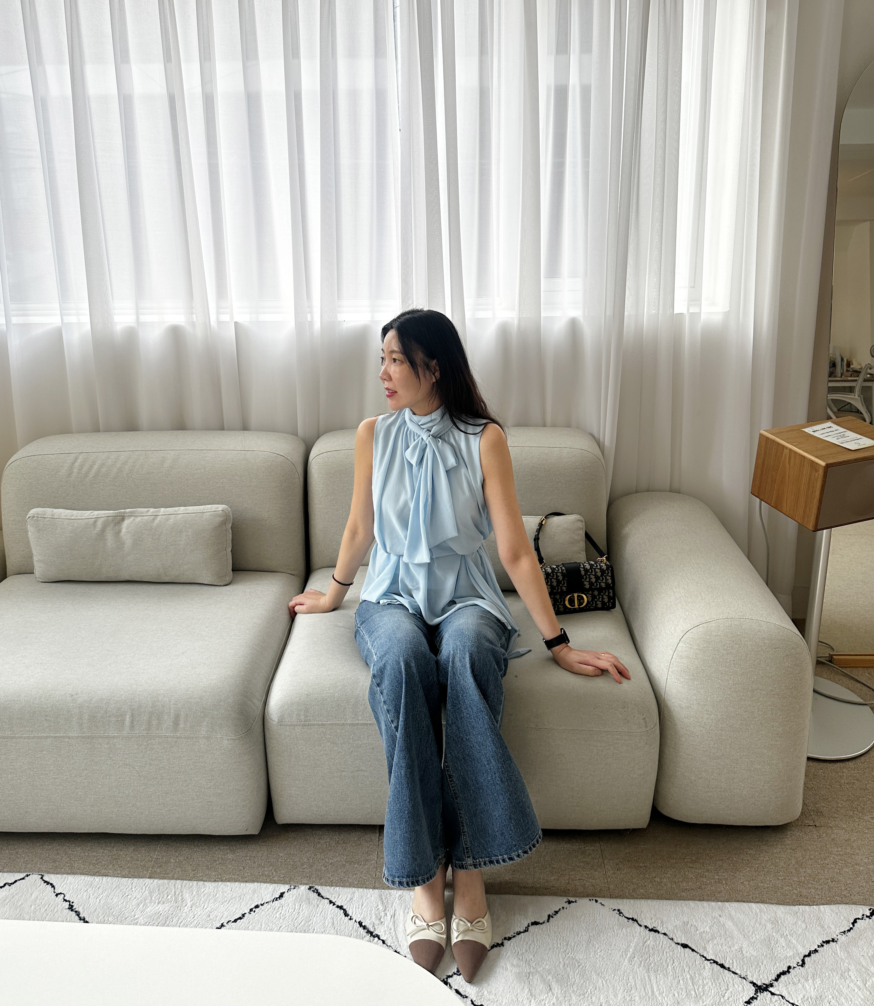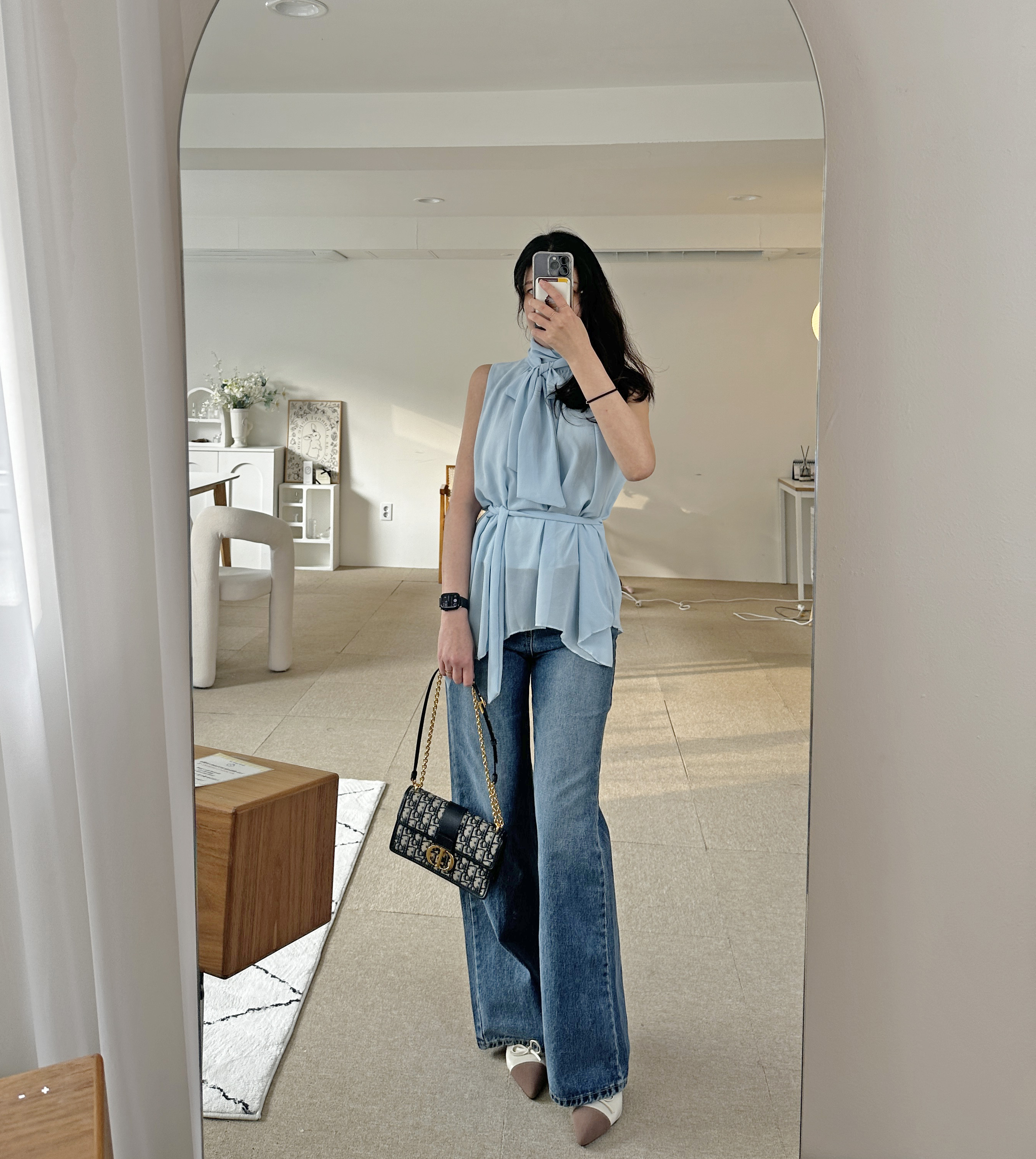 다리가 얇아 보이는 빈티지한 중청 컬러