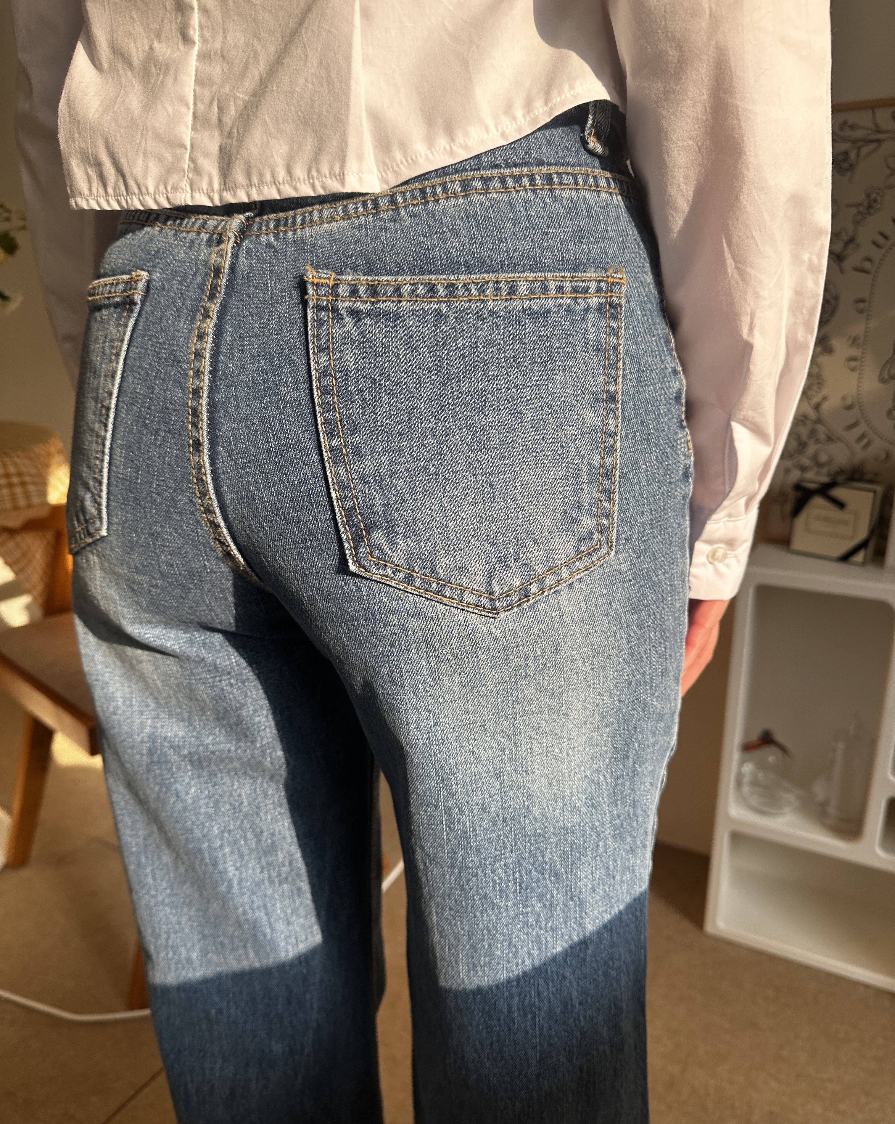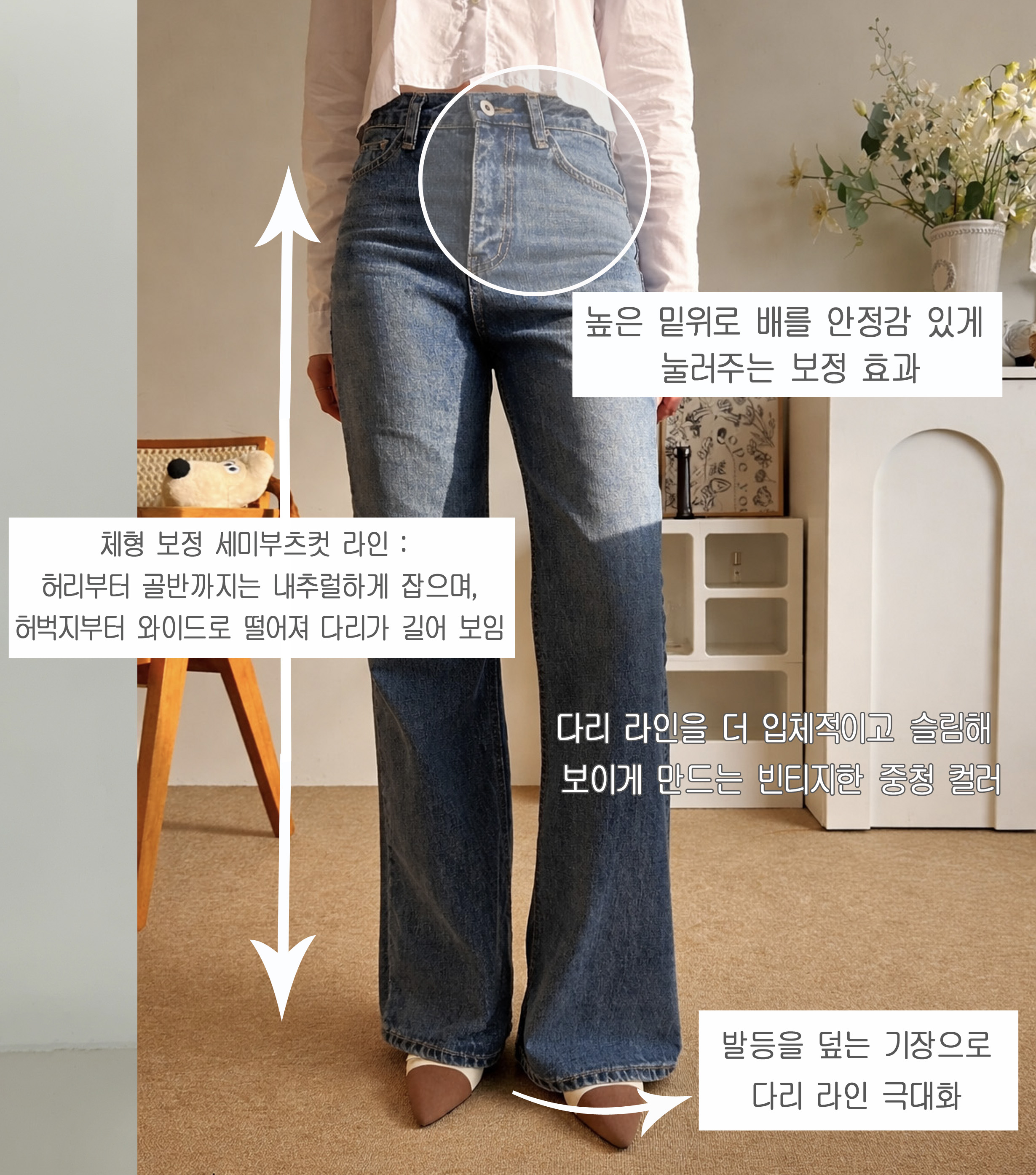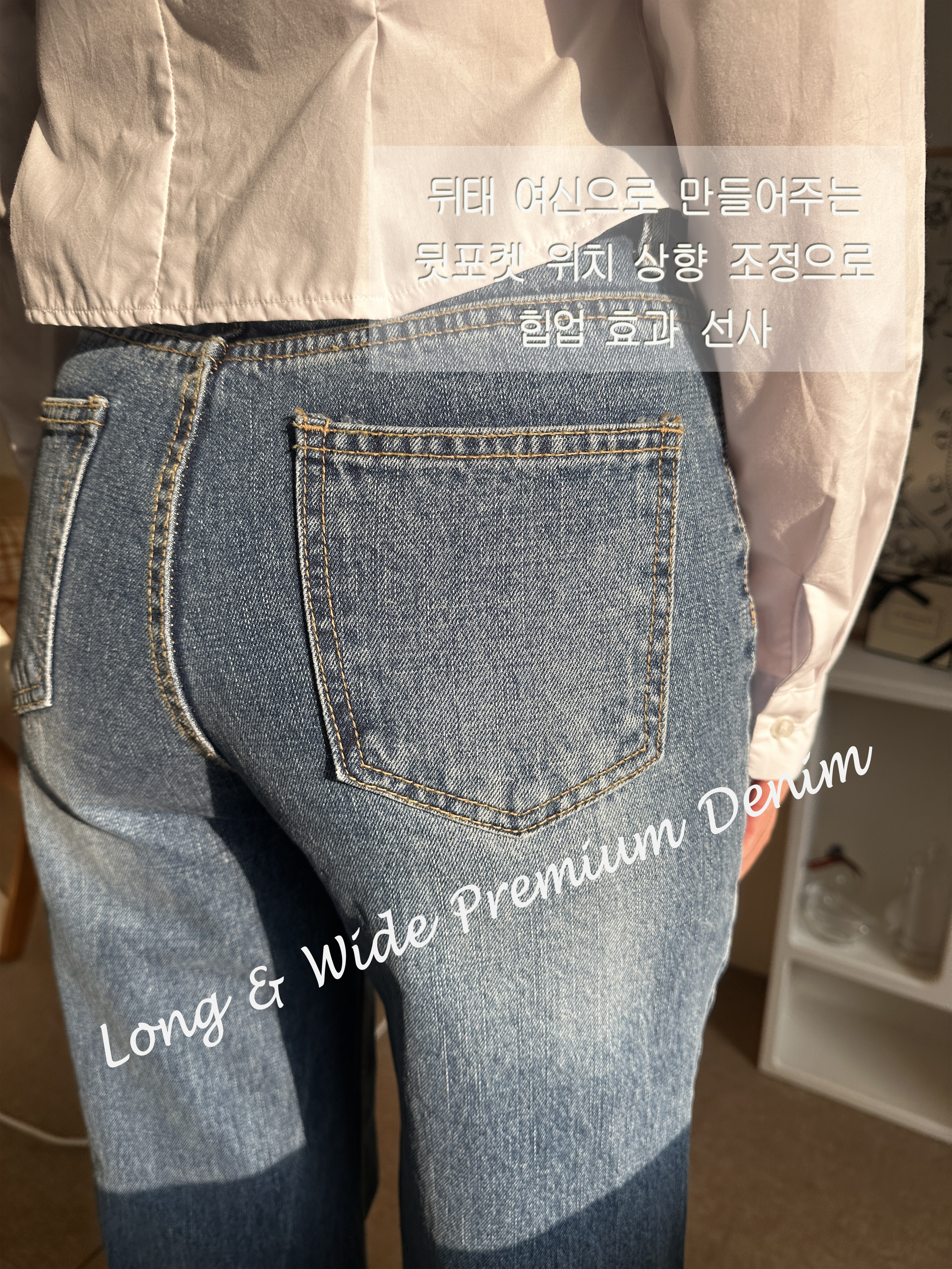 높은 밑위 위치와 백포켓의 절묘한 배치로