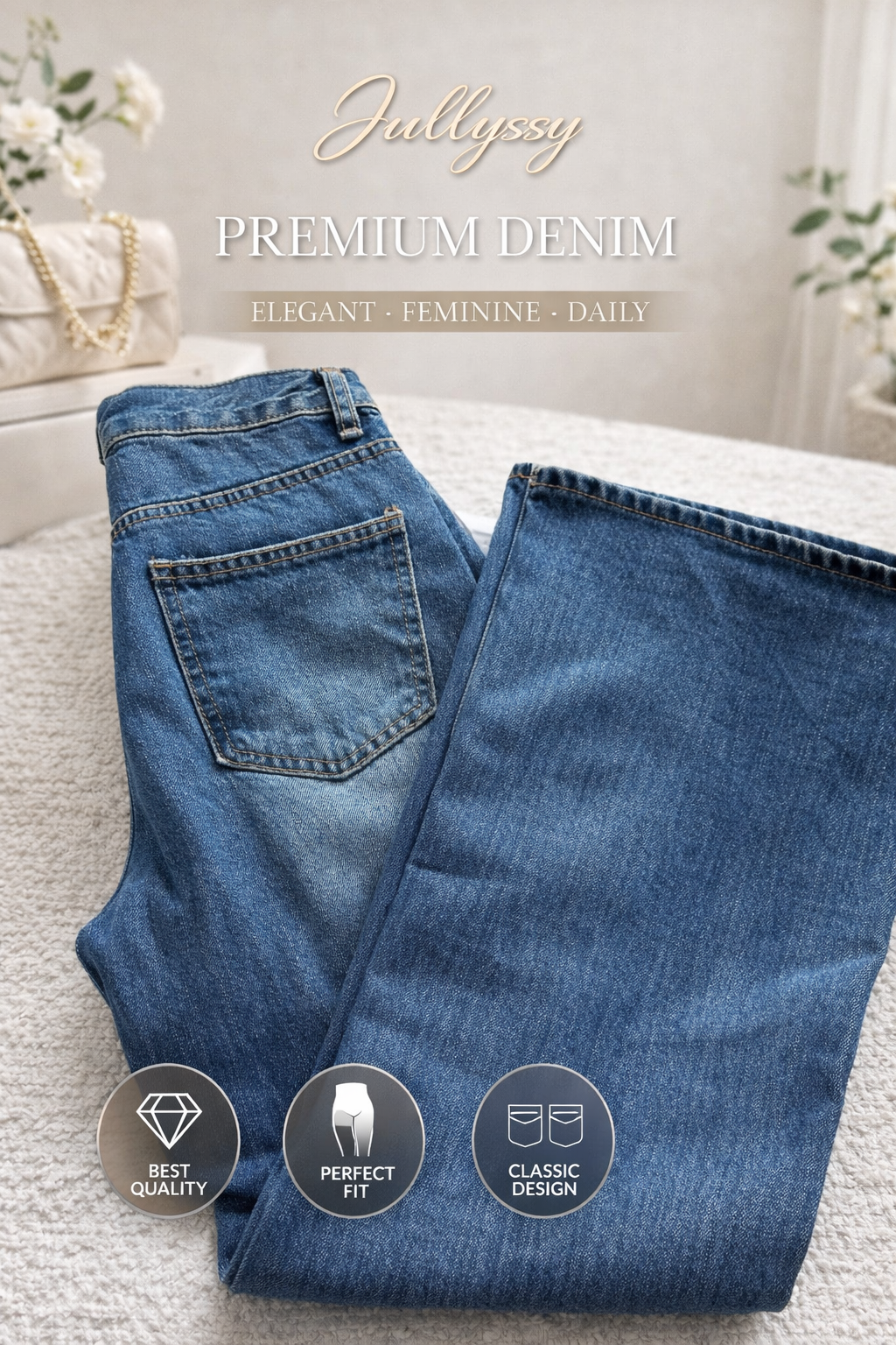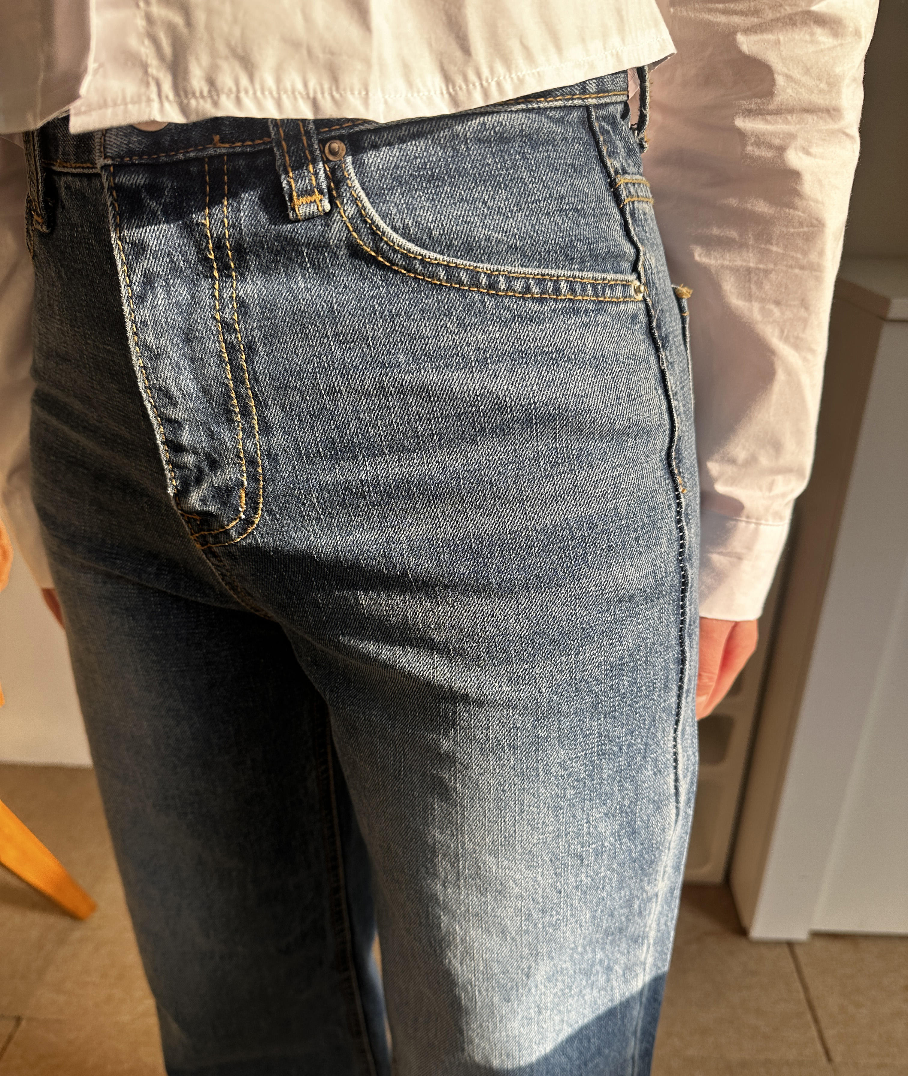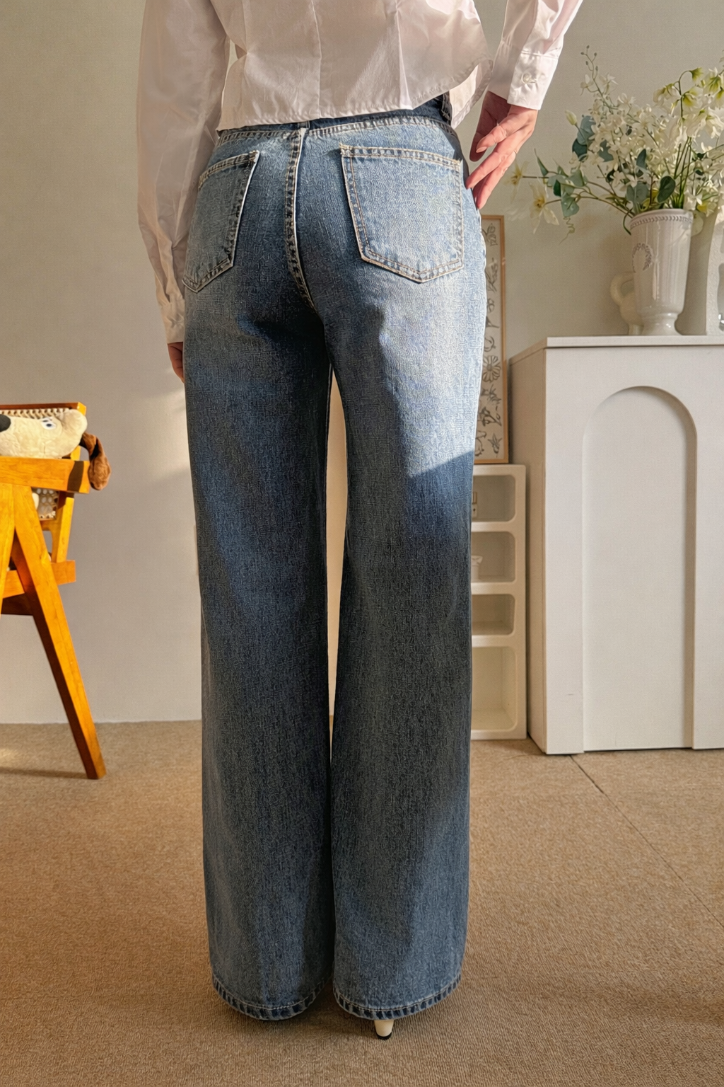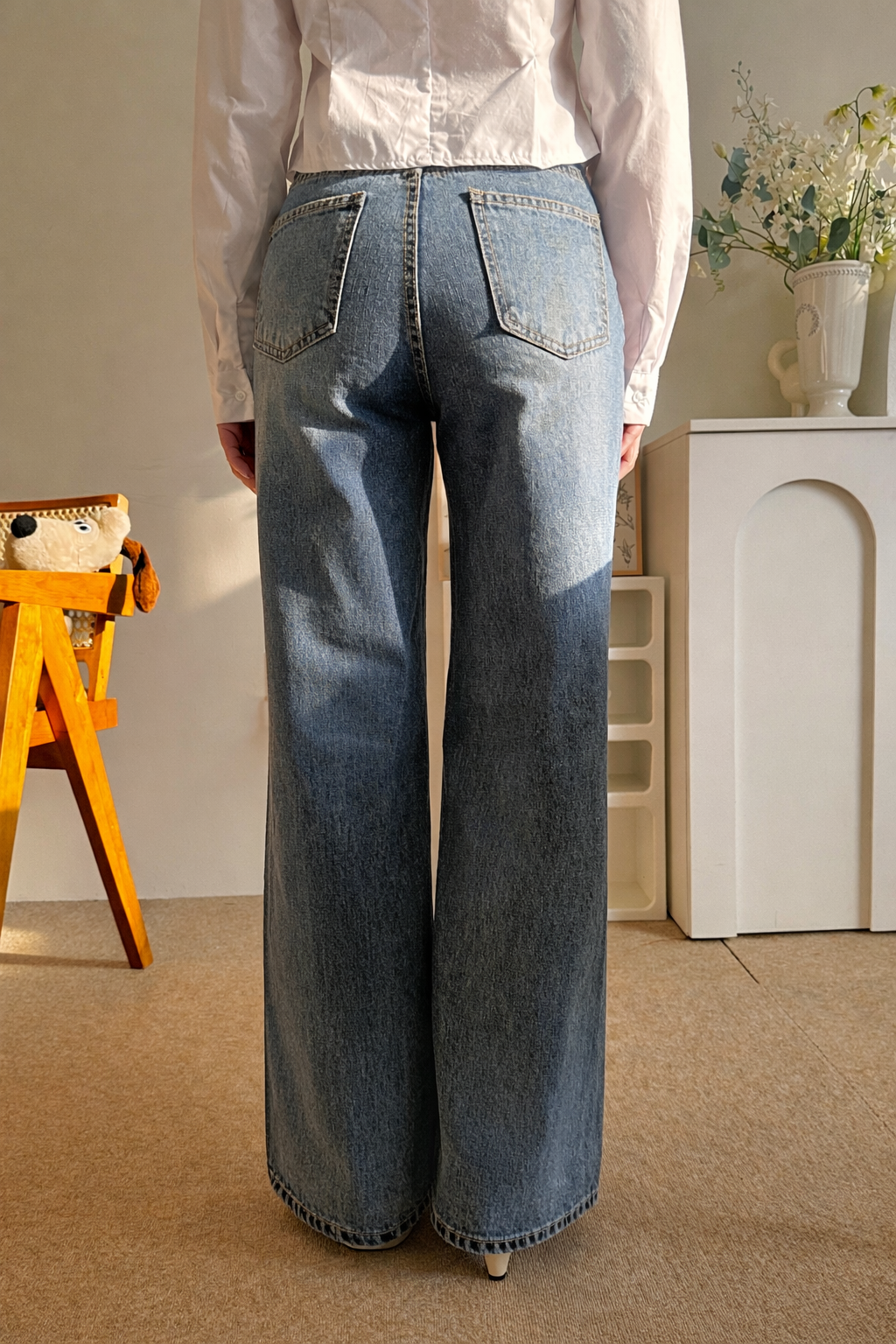 높은 밑위 위치와 백포켓의 절묘한 배치로