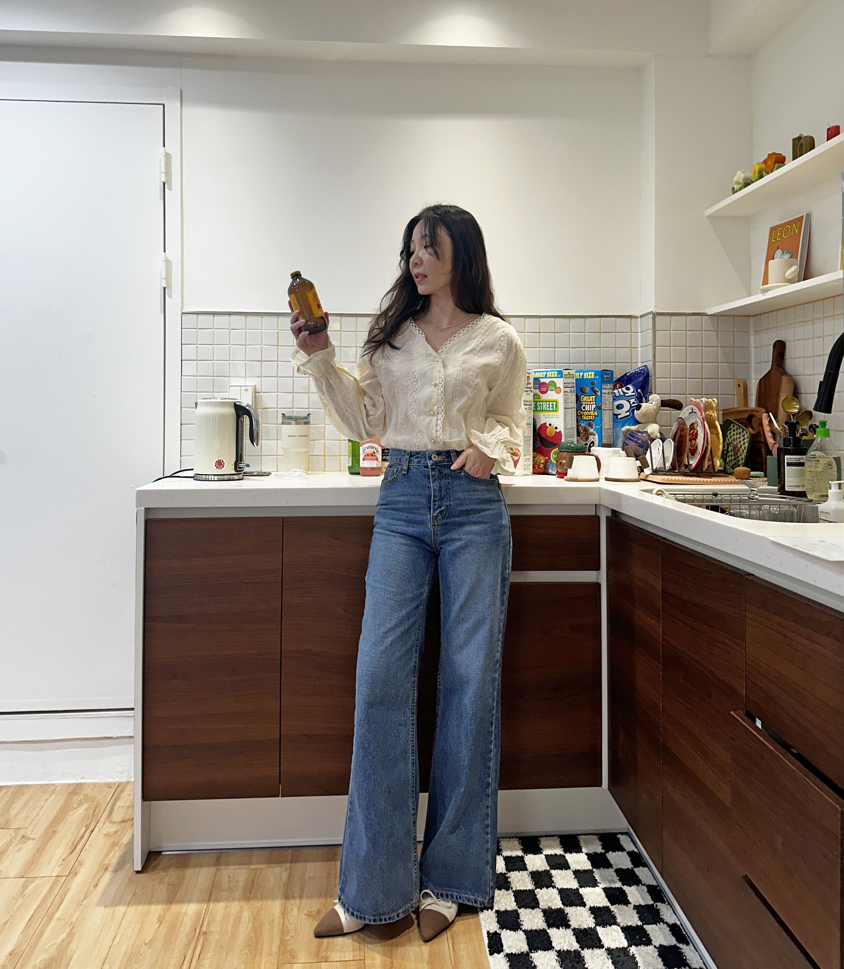 중청 컬러로 사계절 내내 다양한 상의와 매치 가능