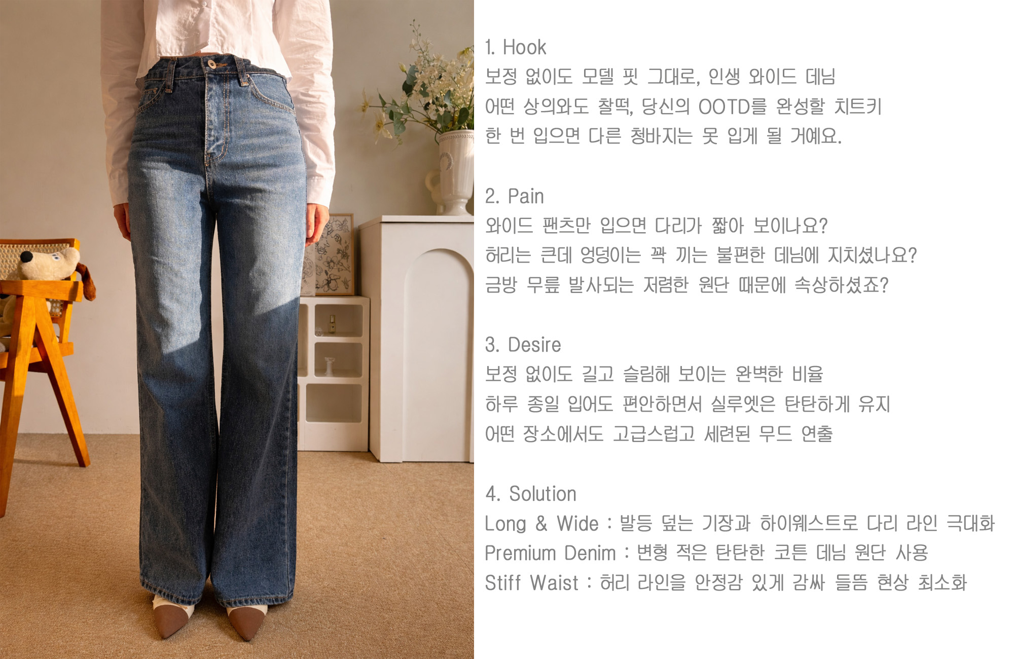 하체 고민을 삭제하는 세미 부츠컷 와이드 핏으로