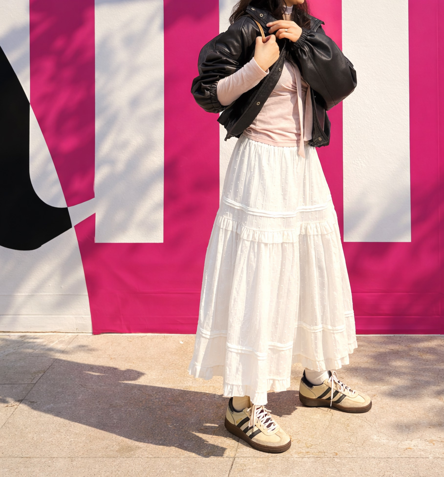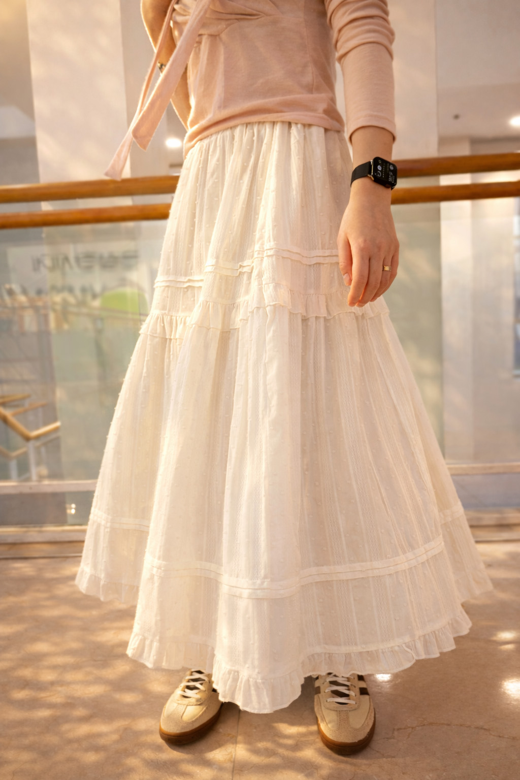 여성스러운 무드를 완성하는 사계절용 롱 스커트