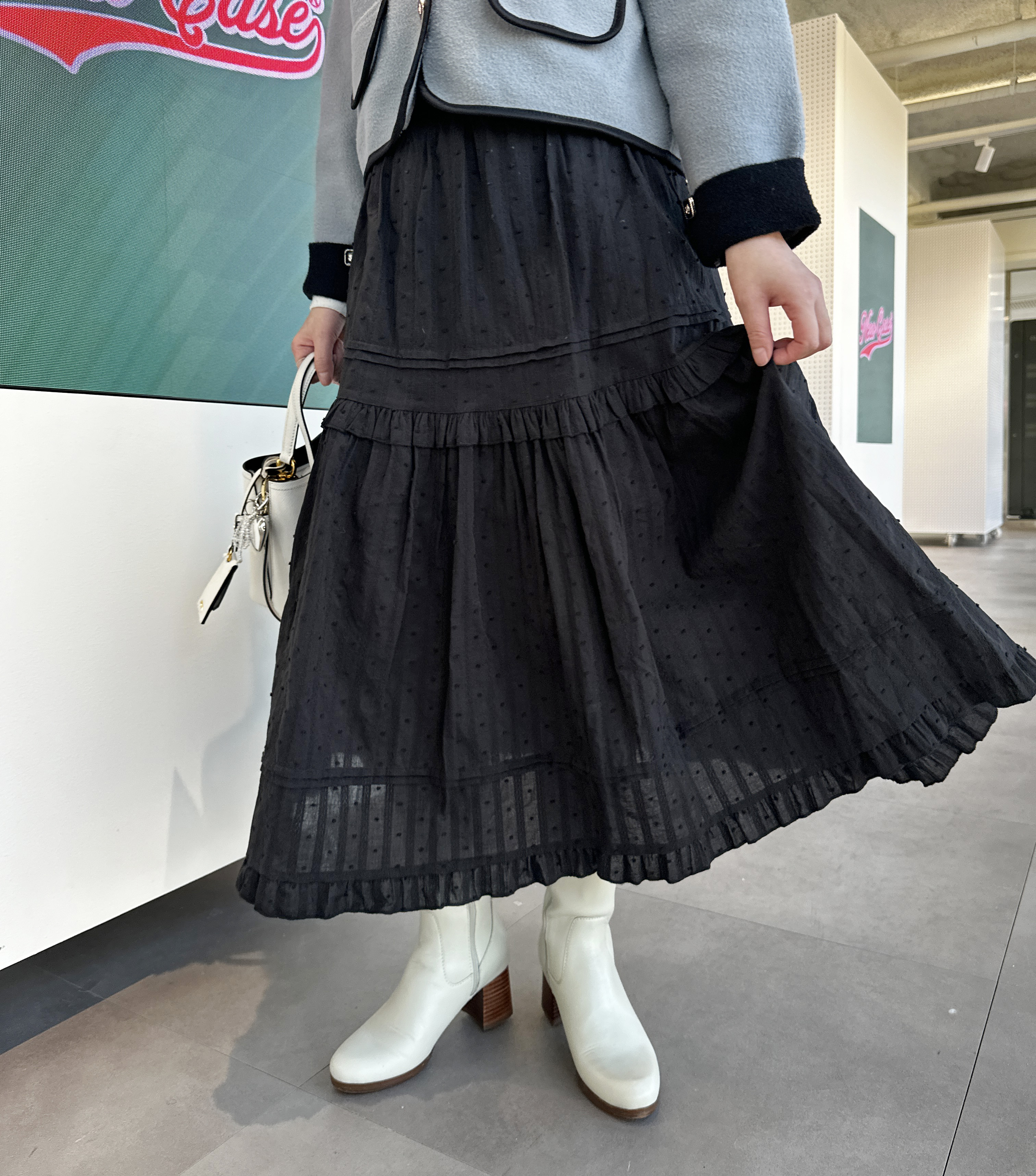 프릴 티어드 롱스커트 캉캉 플레어치마