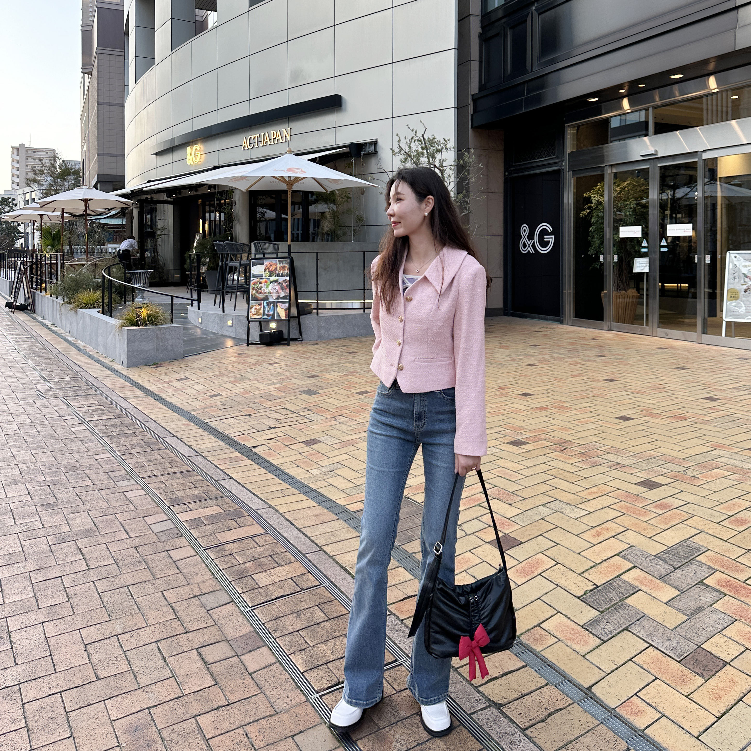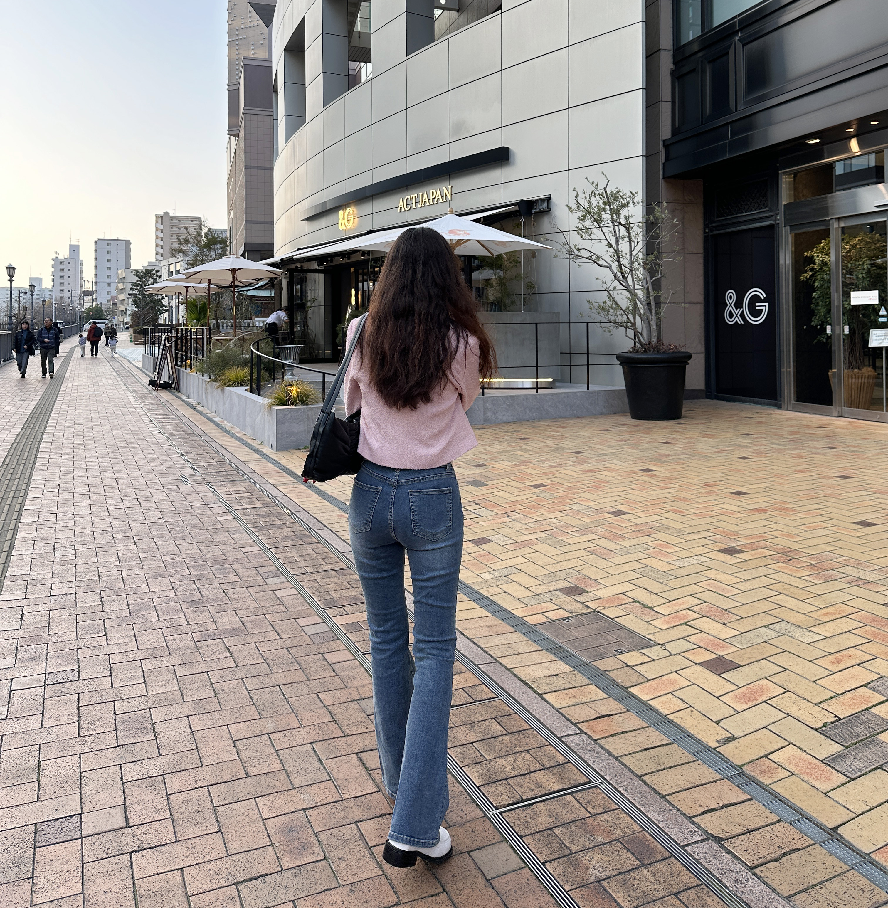 숏하게 떨어져서 키가 더 커보이면서