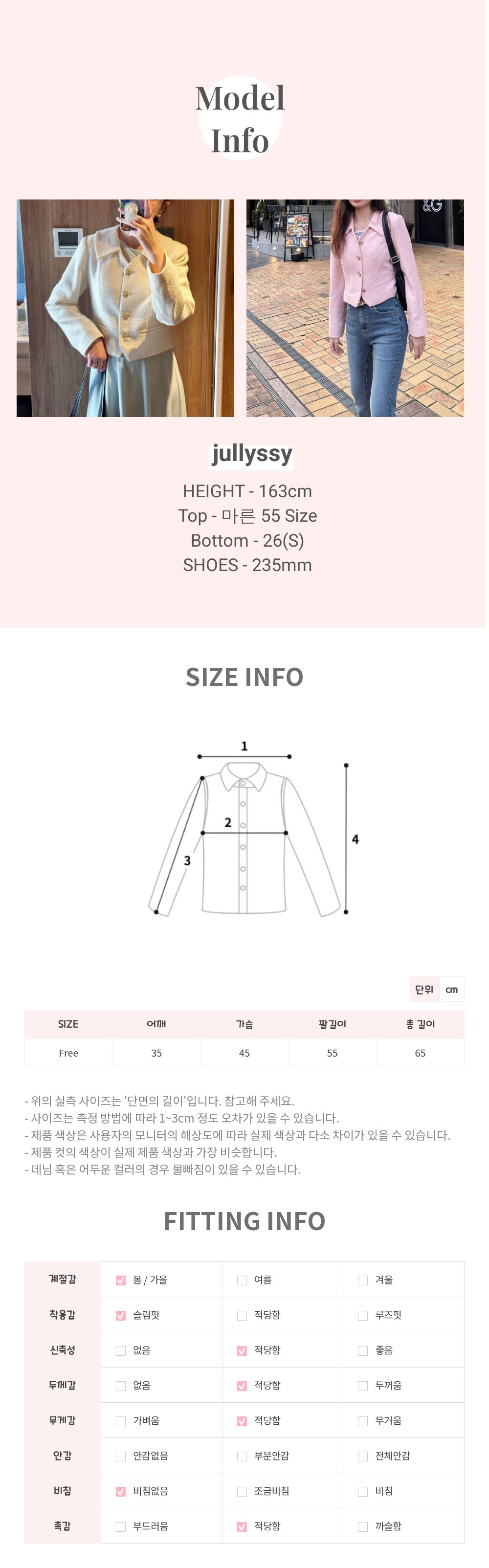 어깨 35 / 가슴 45 / 총길이 65