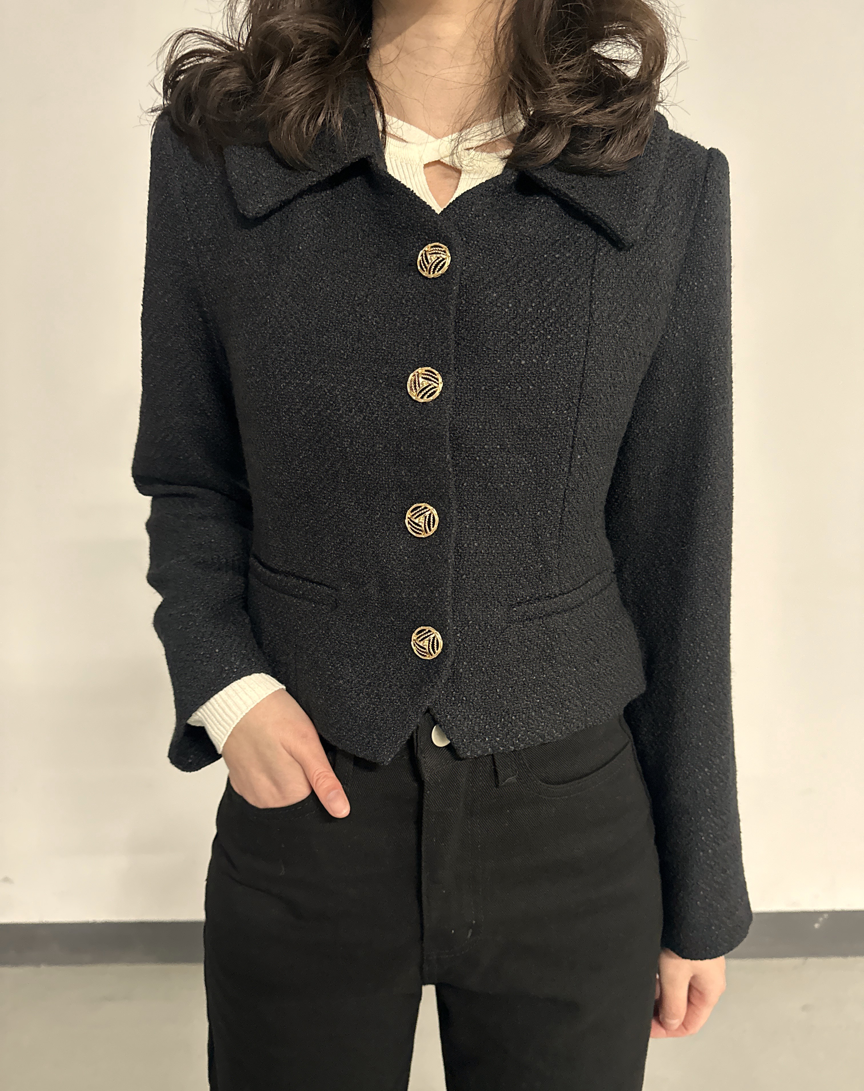 직조감 뛰어난 트위드 원사의 신상 자켓이에요.