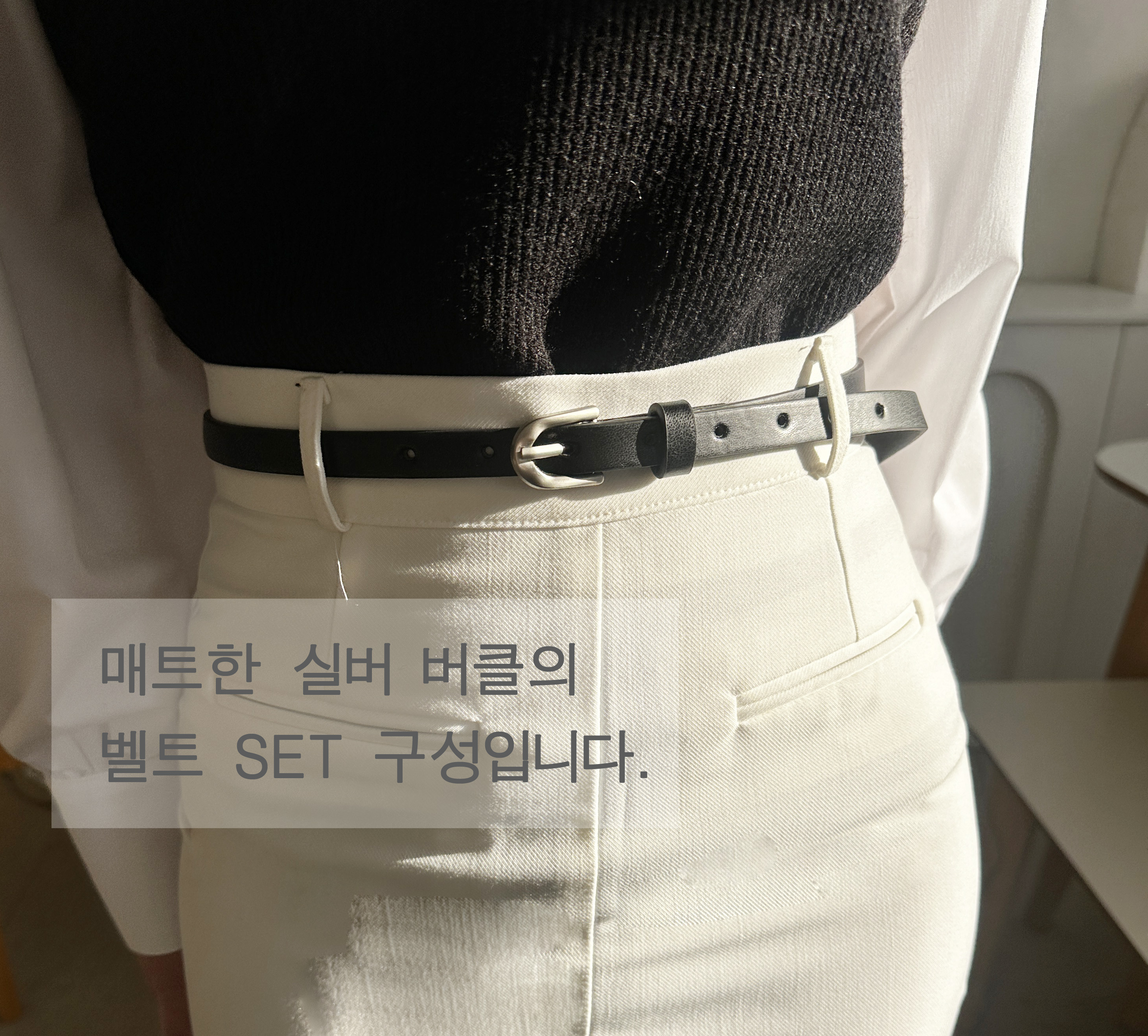 밋밋할 수 있는 허리 라인에 디테일을 더해 상의를 넣어