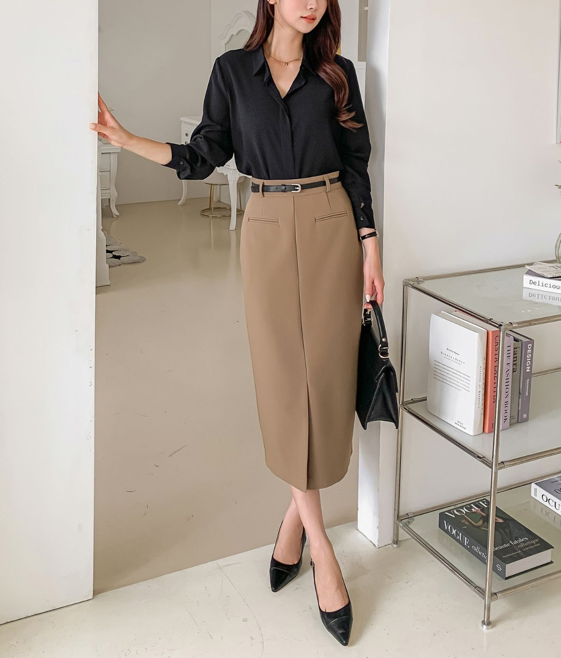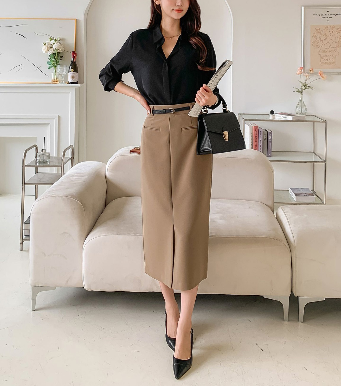셔츠에도 니트에도 찰떡, 일주일 내내 손이 가는 모던룩 치마.